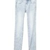 - Zipper fly and button closure.