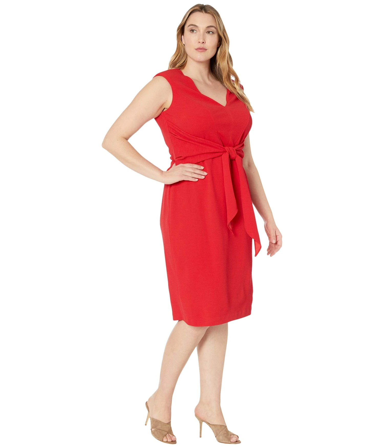 - Command attention in this timeless Adrianna Papell® Plus Size Rio Knit Draped Tie Sheath Dress. It’s crafted in a solid colorway on a lined stretch-poly knit, and features self-tie detail at waist.