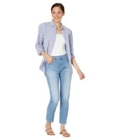 - Cropped boyfriend jean sports a mid-rise and slightly tapered leg.