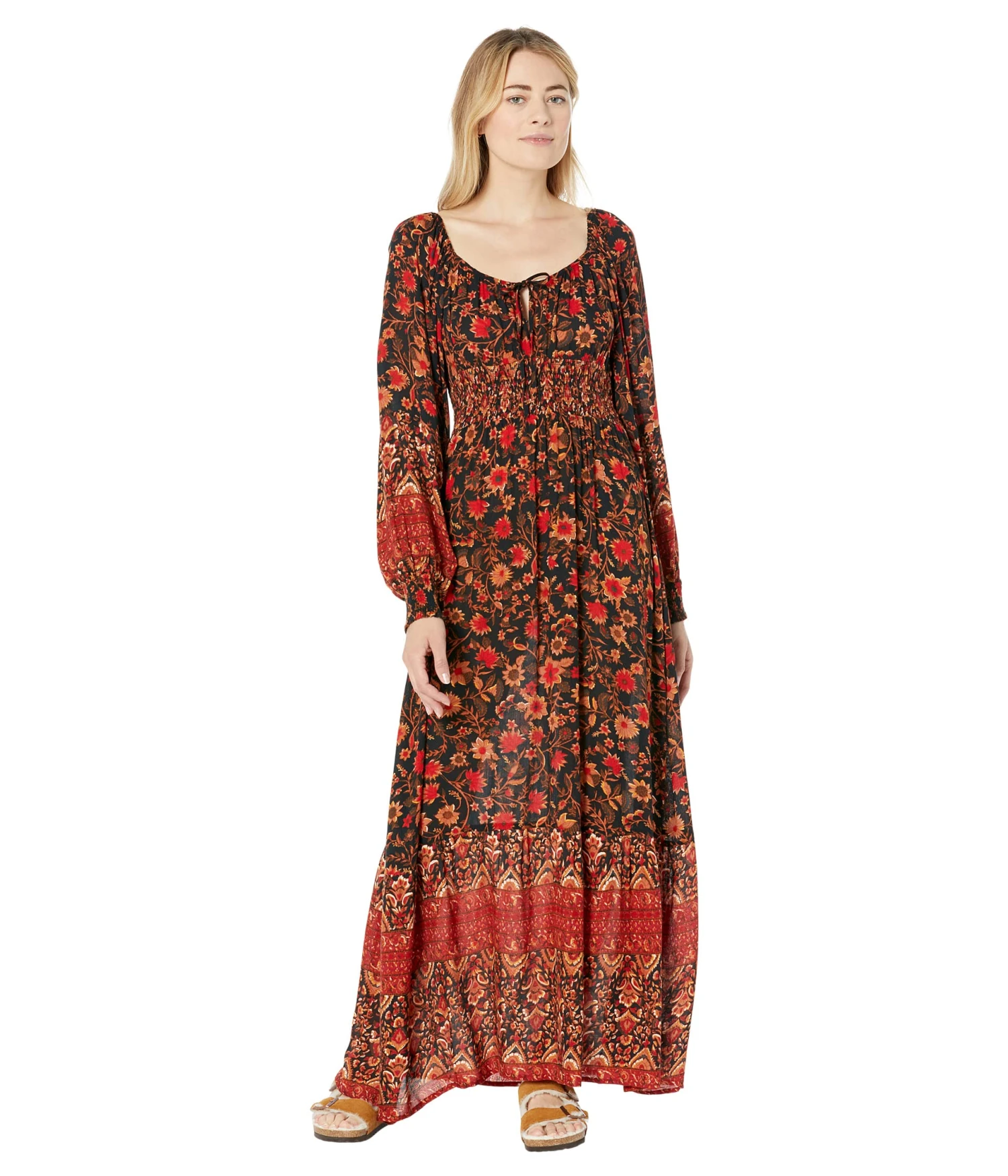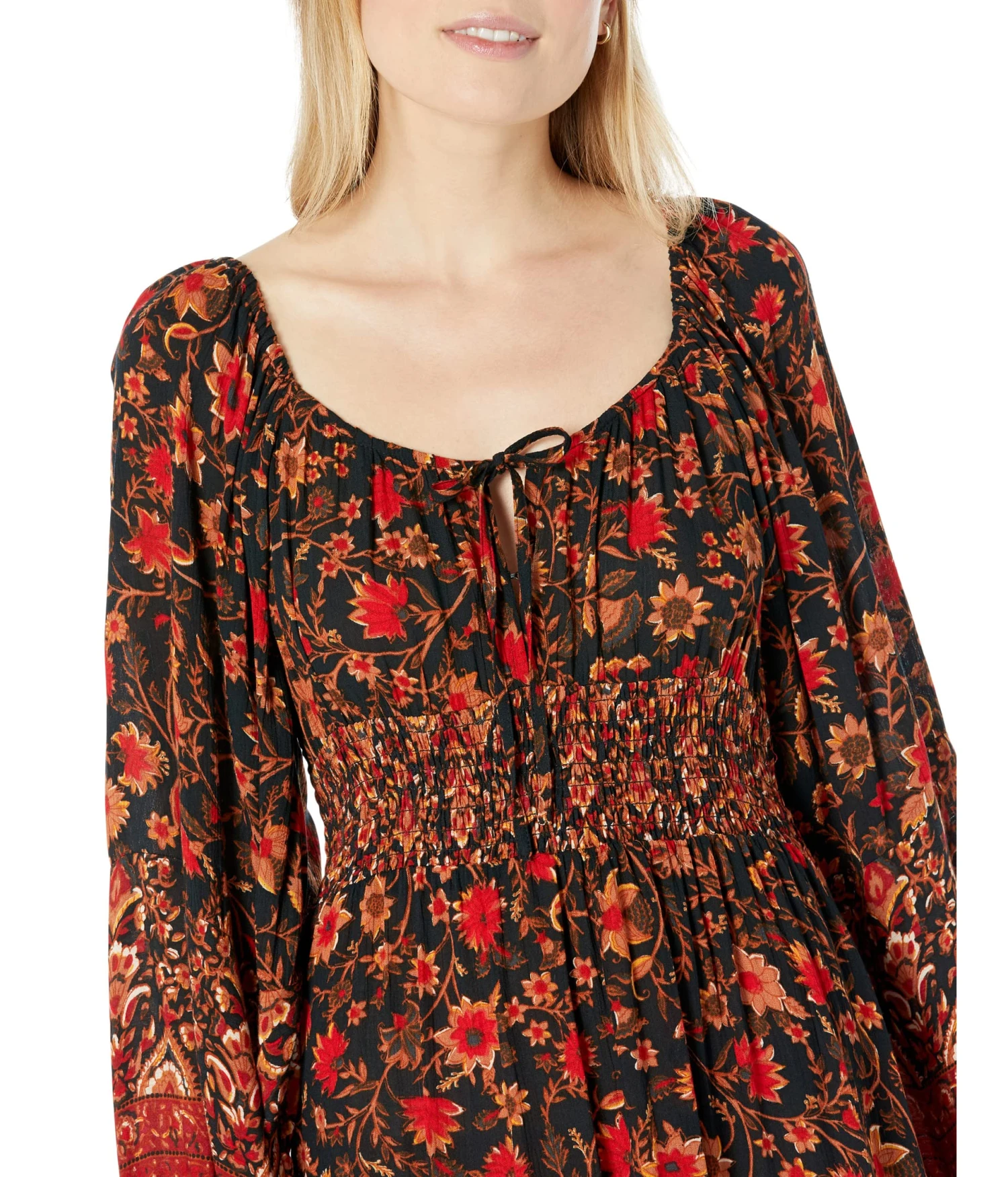 - Long blouson sleeves.