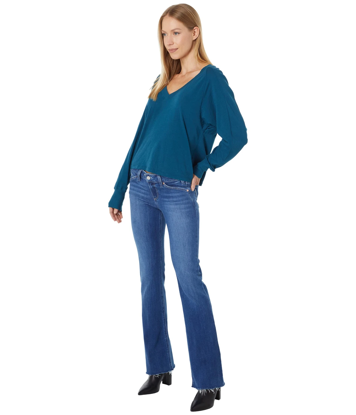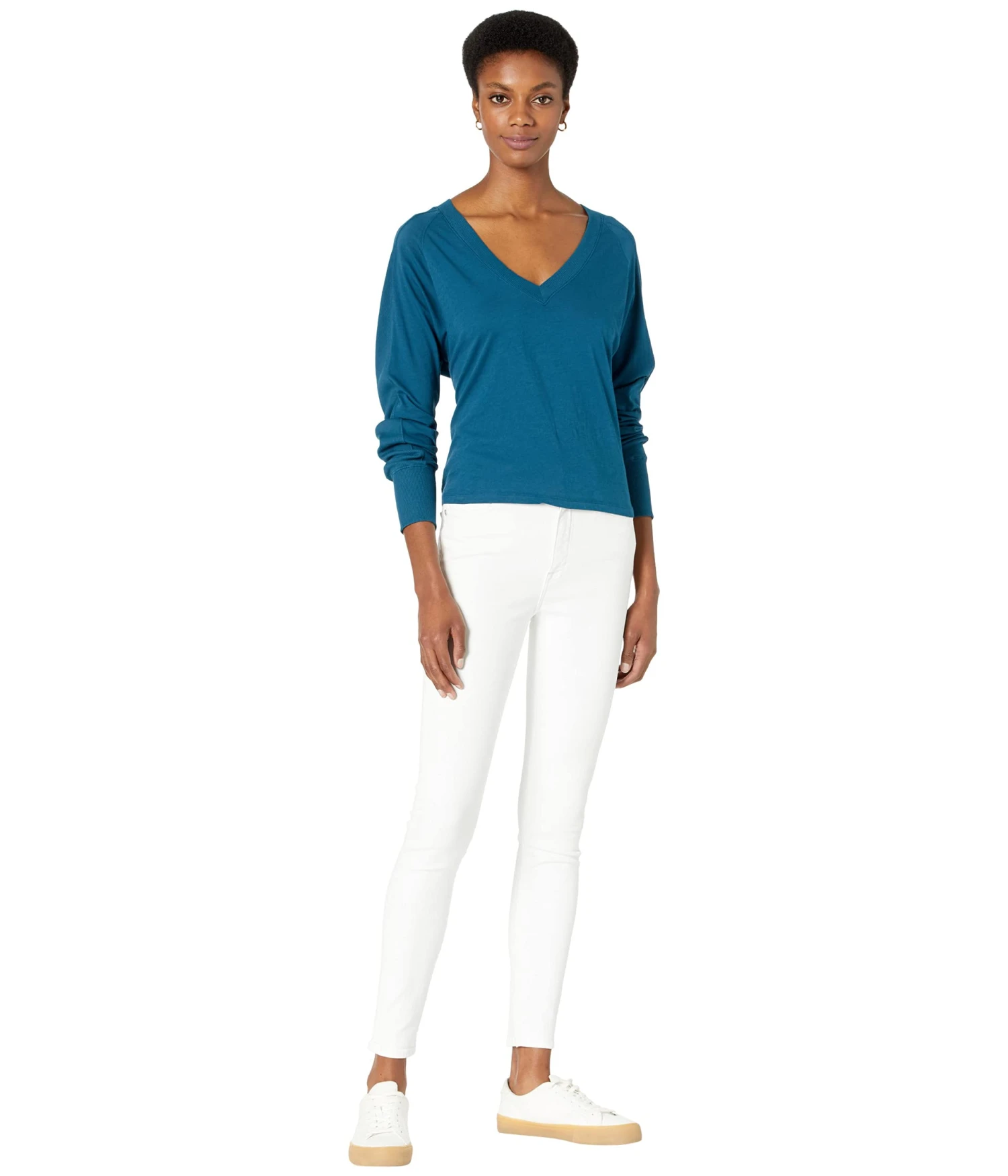 - Enhance casual looks with chic style in the bobi™ Los Angeles Lightweight Jersey Rib Mixed Boxy Raglan V-Neck Tee.