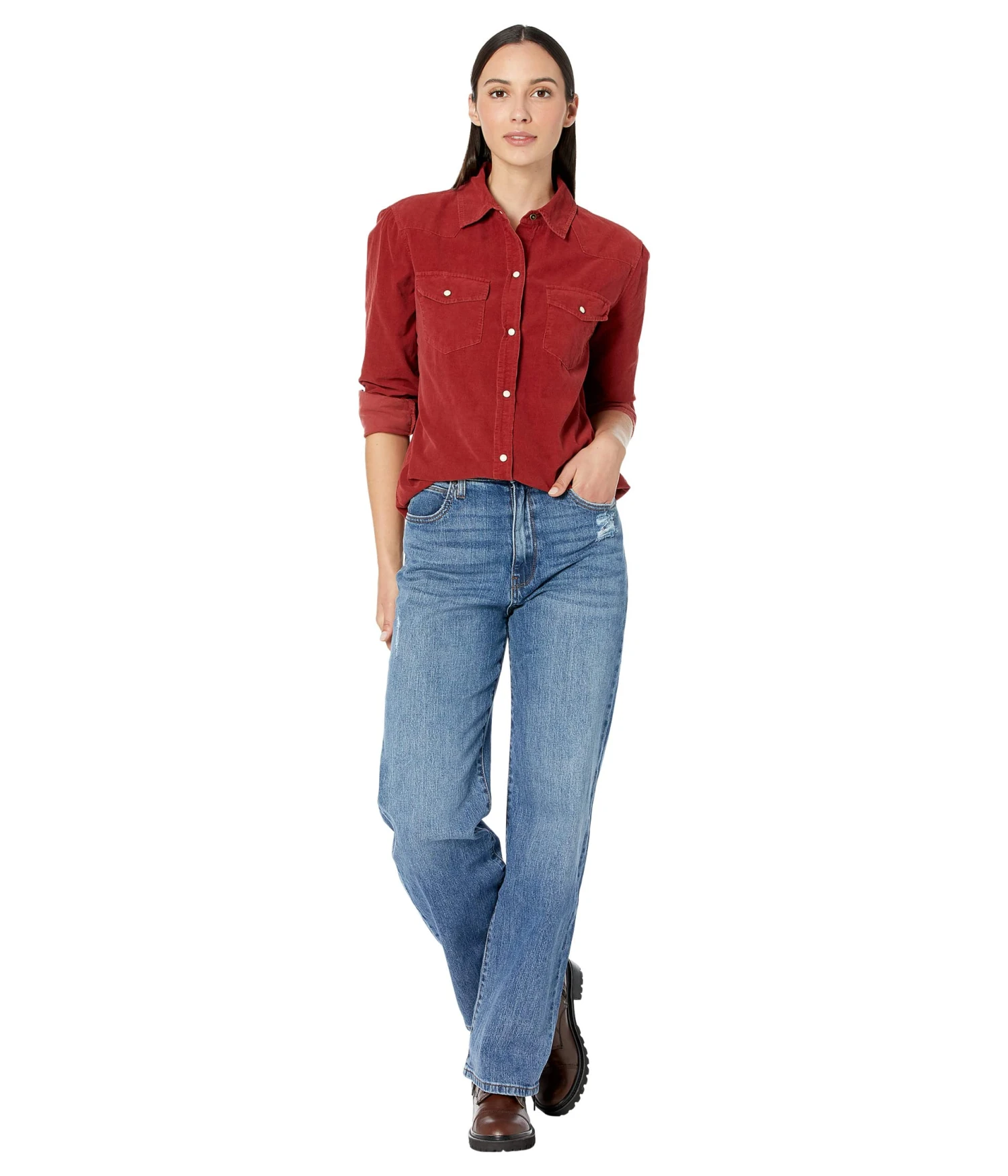 - Dress up in style and elegance wearing Elliott Lauren™ Corduroy Snap Front Shirt with Western Details.