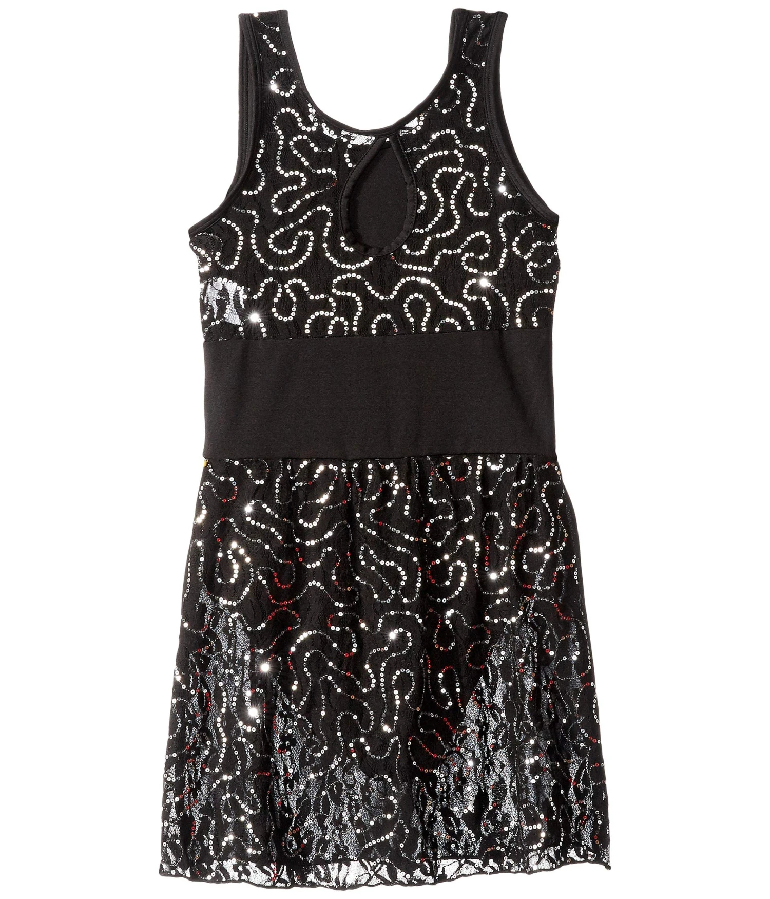 - She’ll dance divinely! Featuring a modern cut and eye-catching sequined back panel, this Sequin Lace Skirted Leotard elevates the feminine finish of every studio session.