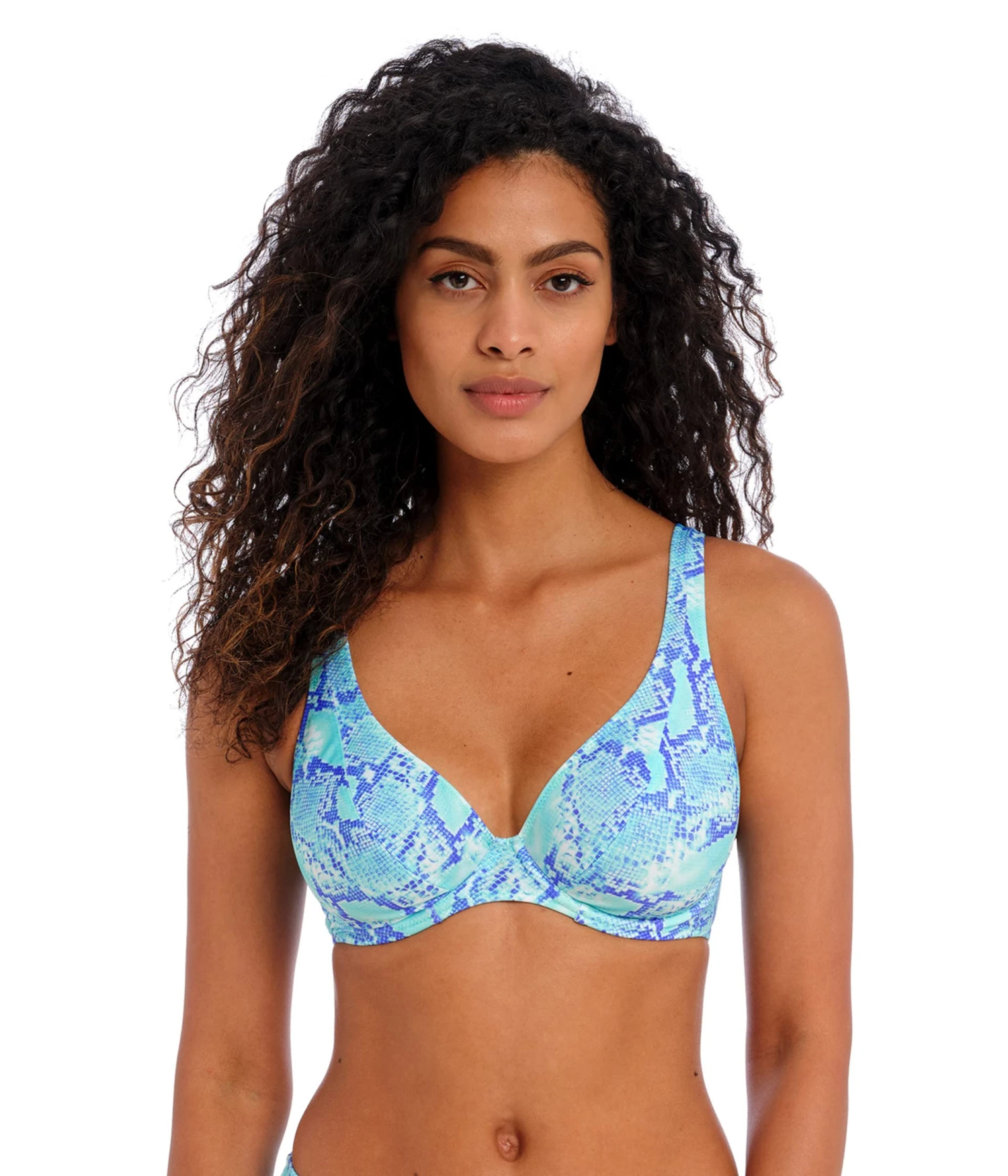 - Flaunt your best assets without feeling uncomfortable wearing the FREYA Komodo Bay Underwire High Apex Bikini Top.