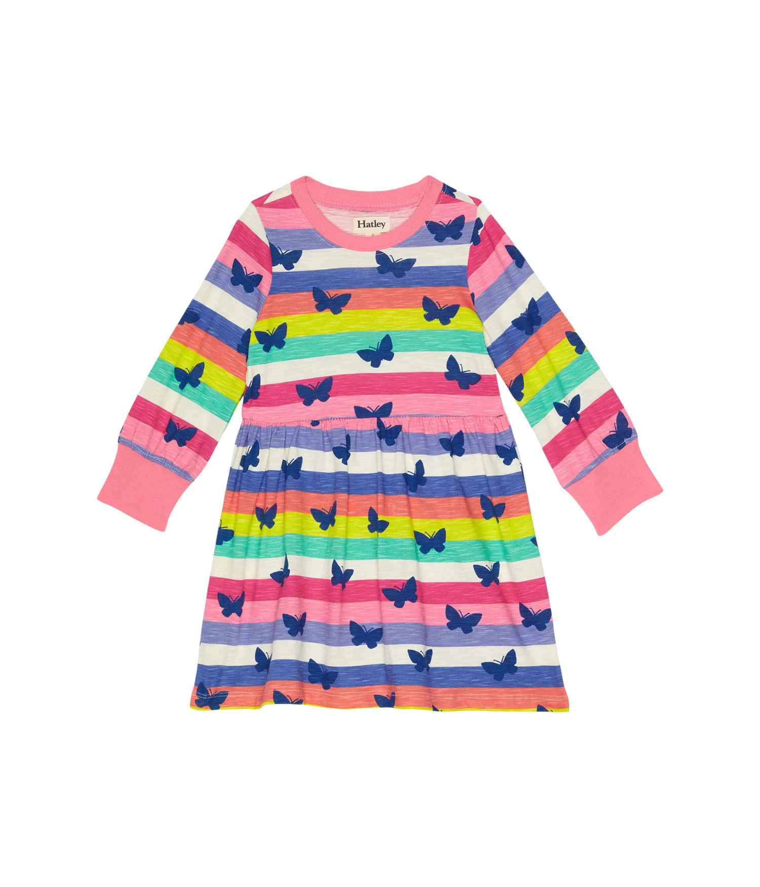 - Let your little one feel comfortable and stylish at the same time wearing the Hatley® Kids Rainbow Stripe Skater Dress.