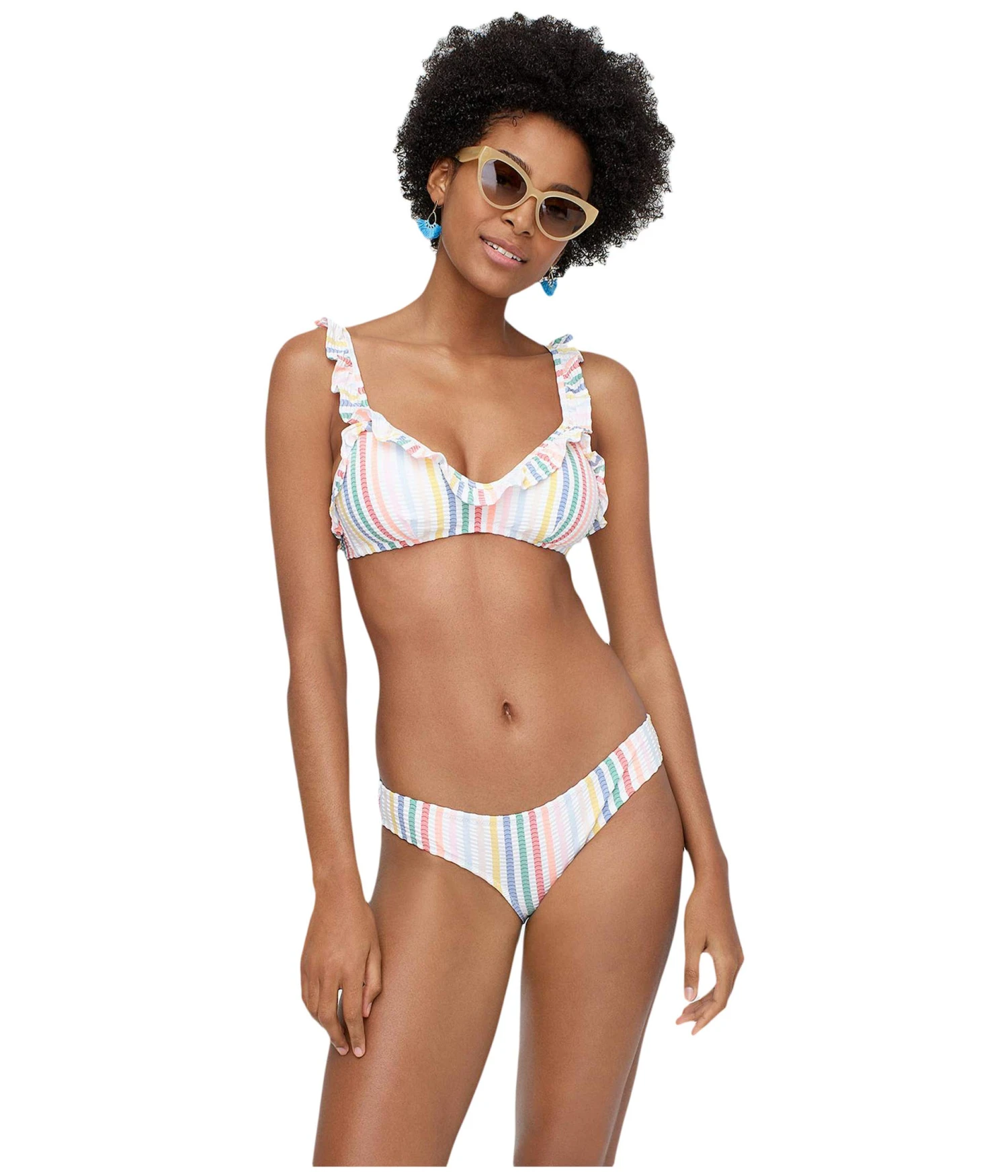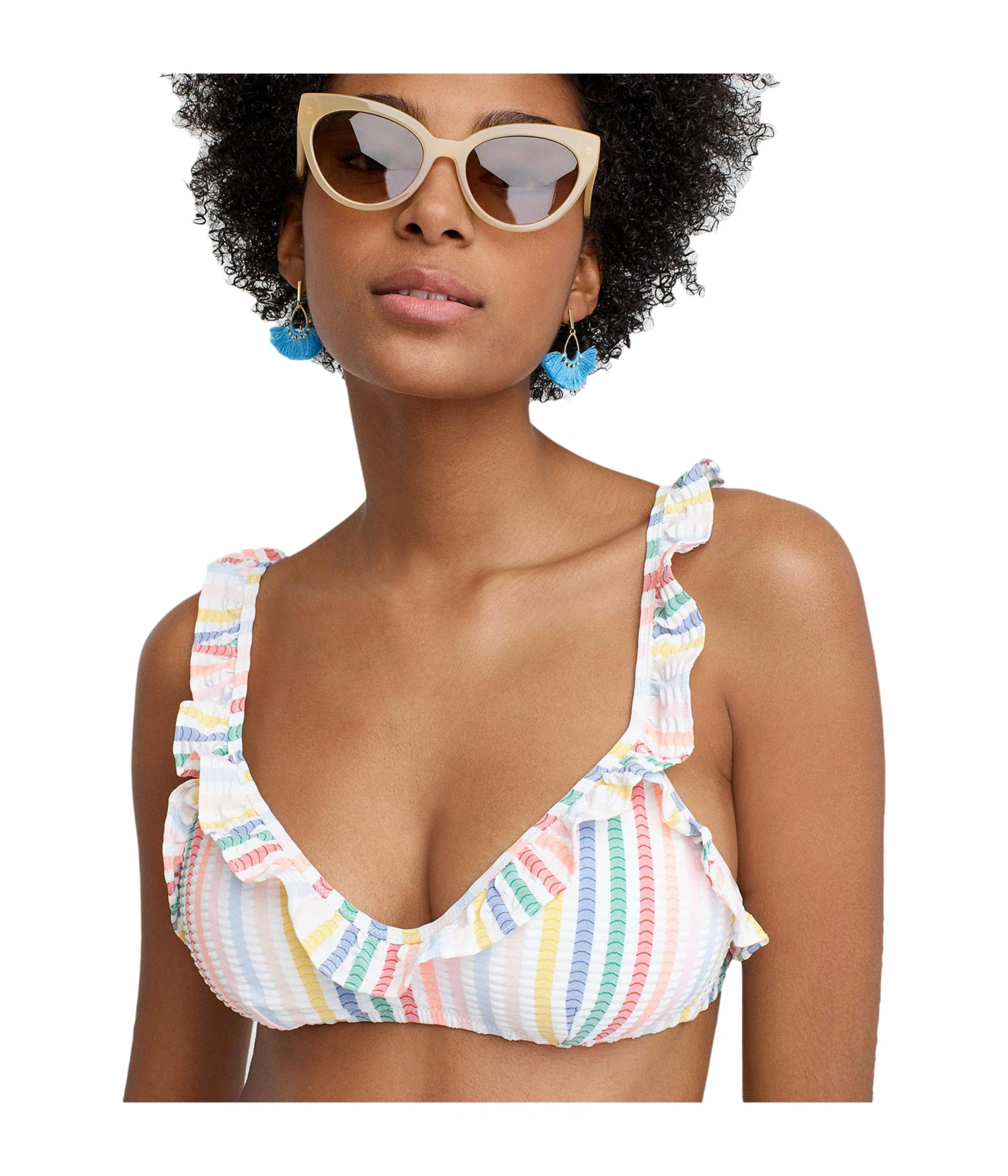 - The J.Crew™ French Top with Ruffles features a plunge neckline, playful ruffle applique, adjustable shoulder straps and soft removable cups for desired fit and shape creating a warm weather look everyone will want to duplicate.