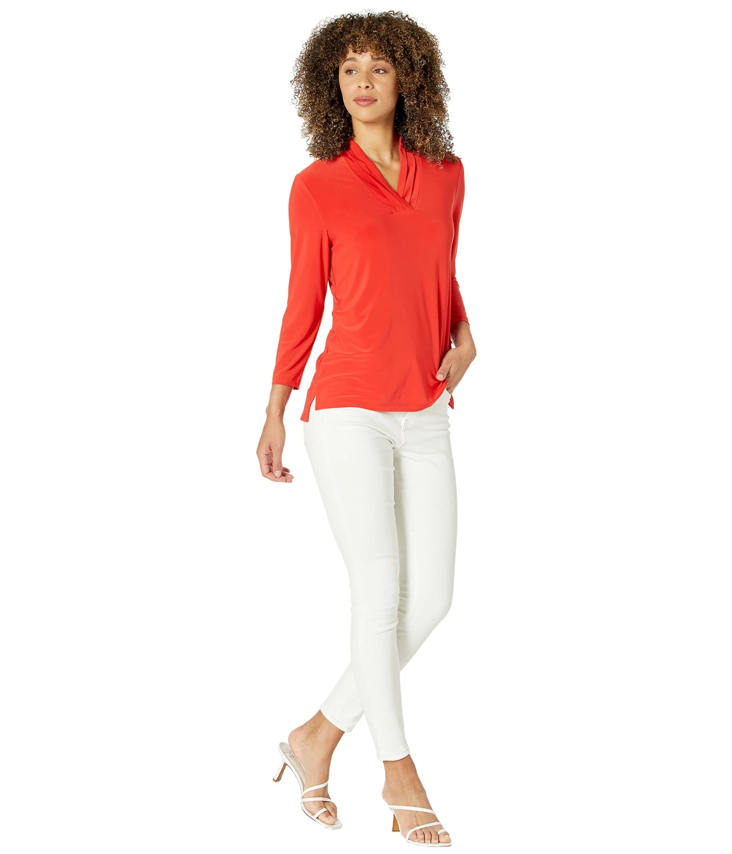 - Skinny leg features rough hems and side slits for movability.