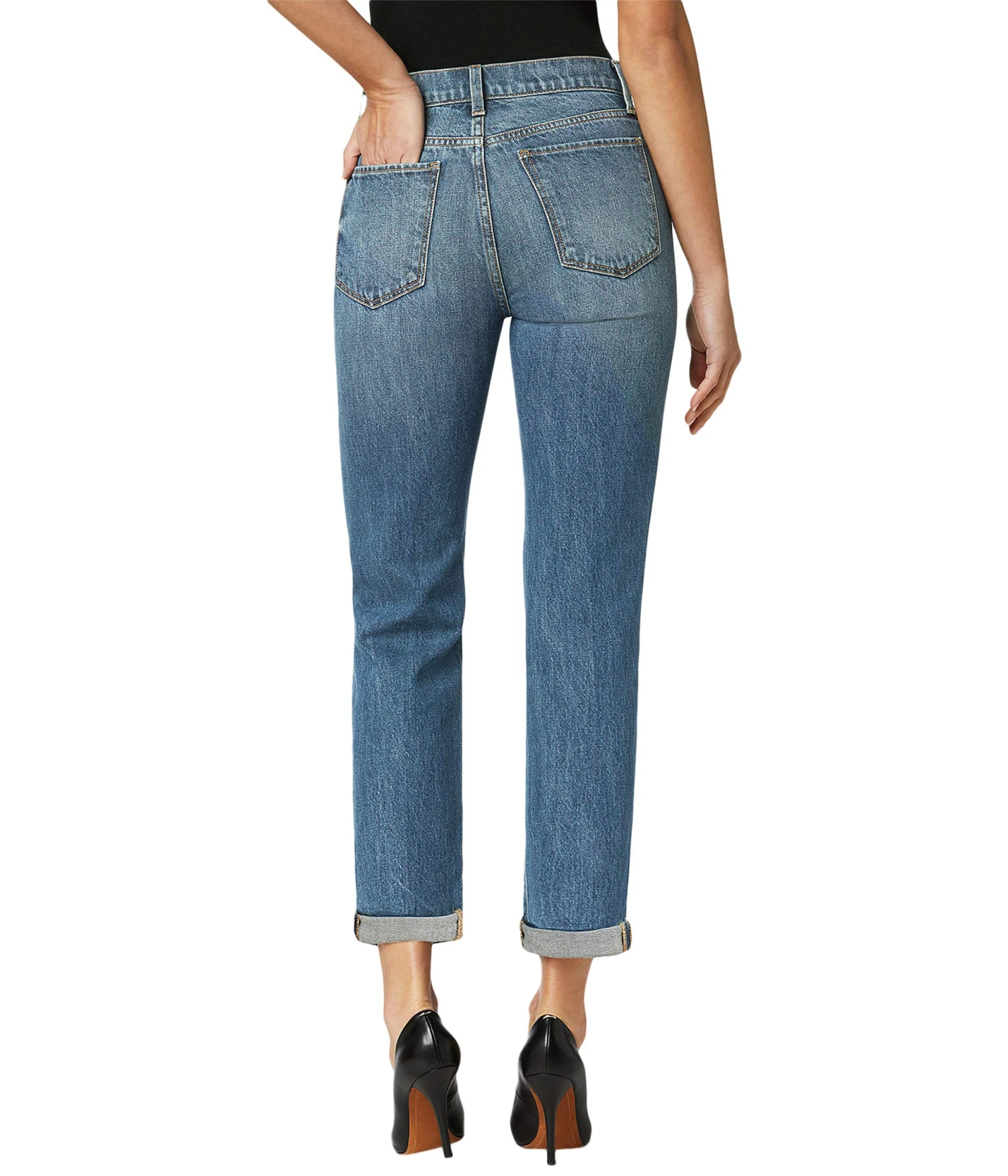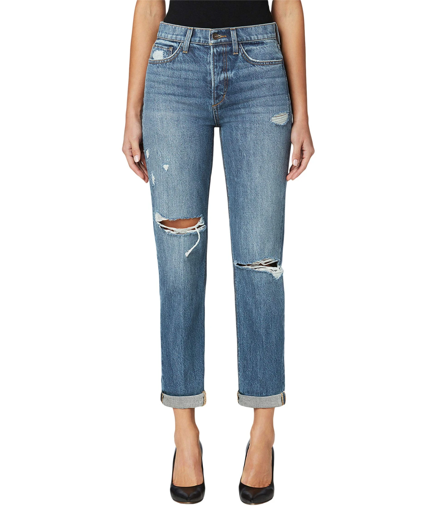 - You won’t have to raid anyone’s closet but your own for this fab Joe’s Jeans® The Scout jeans. The five-pocket girlfriend jean has a mid-rise and fits slim through the hip and relaxed through the thigh and calf. The medium-light blue wash boasts slight destruction and a double rolled cuff for an easy laid back wear.