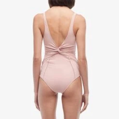 - Feel fabulous as you take to the beachside wearing the V-neck Jonathan Simkhai™ Hawaiian Front Twist One-Piece with perforated accents and full rear coverage.