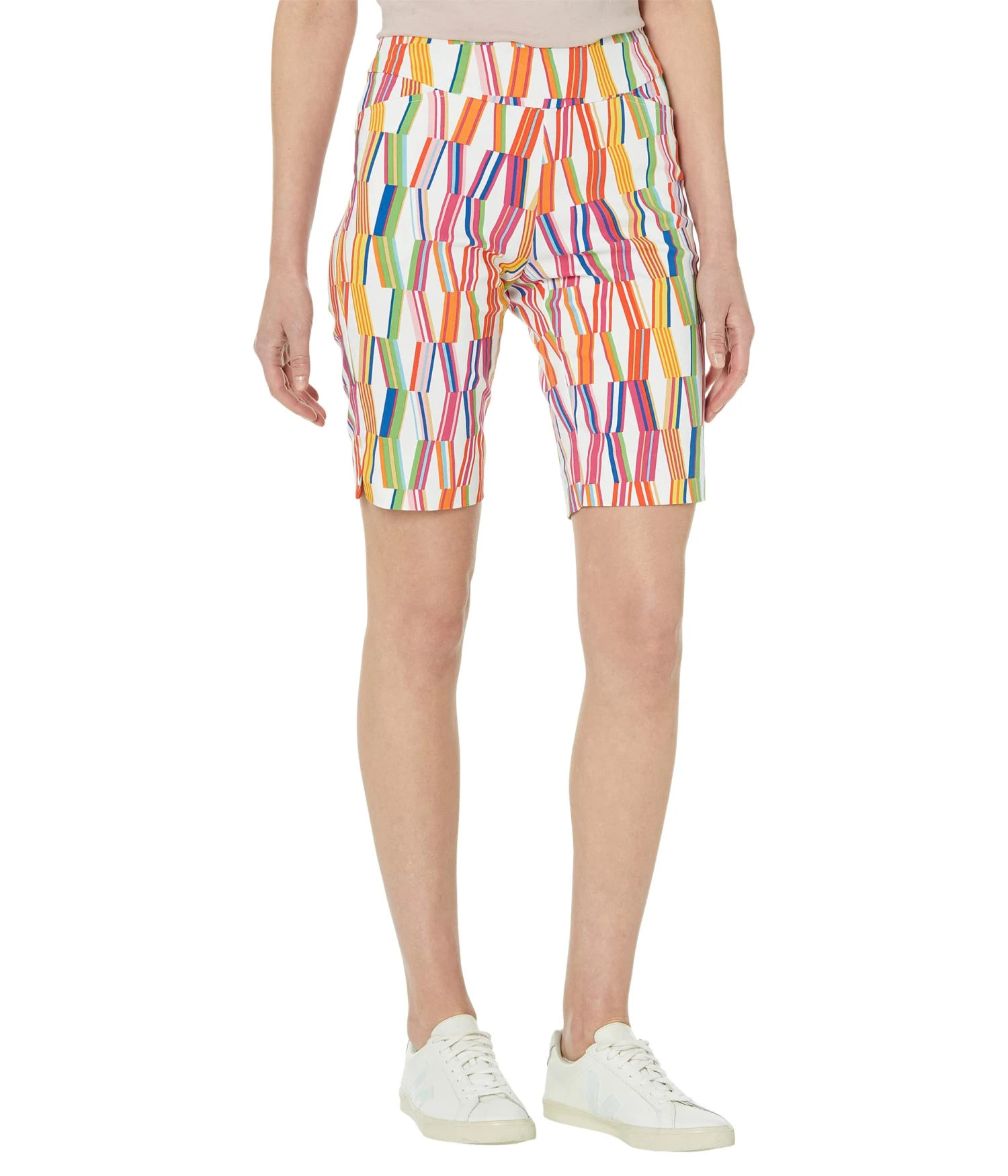 - Pull-on short flaunts a high rise with a regular fit that hits just above the knee.