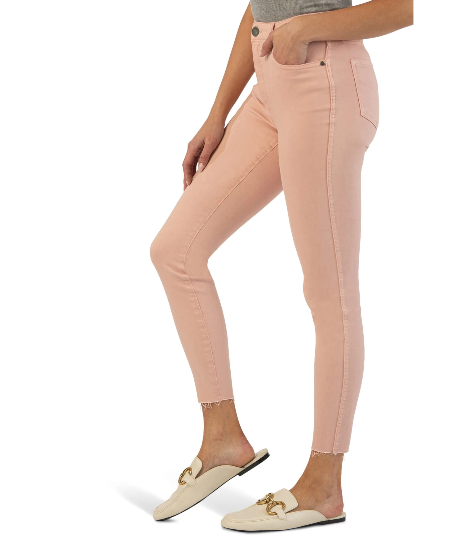 - Give your styling game a sleek update by wearing the KUT from the Kloth™ Connie High-Rise Fab AB Ankle Skinny Raw Hem in Rose.