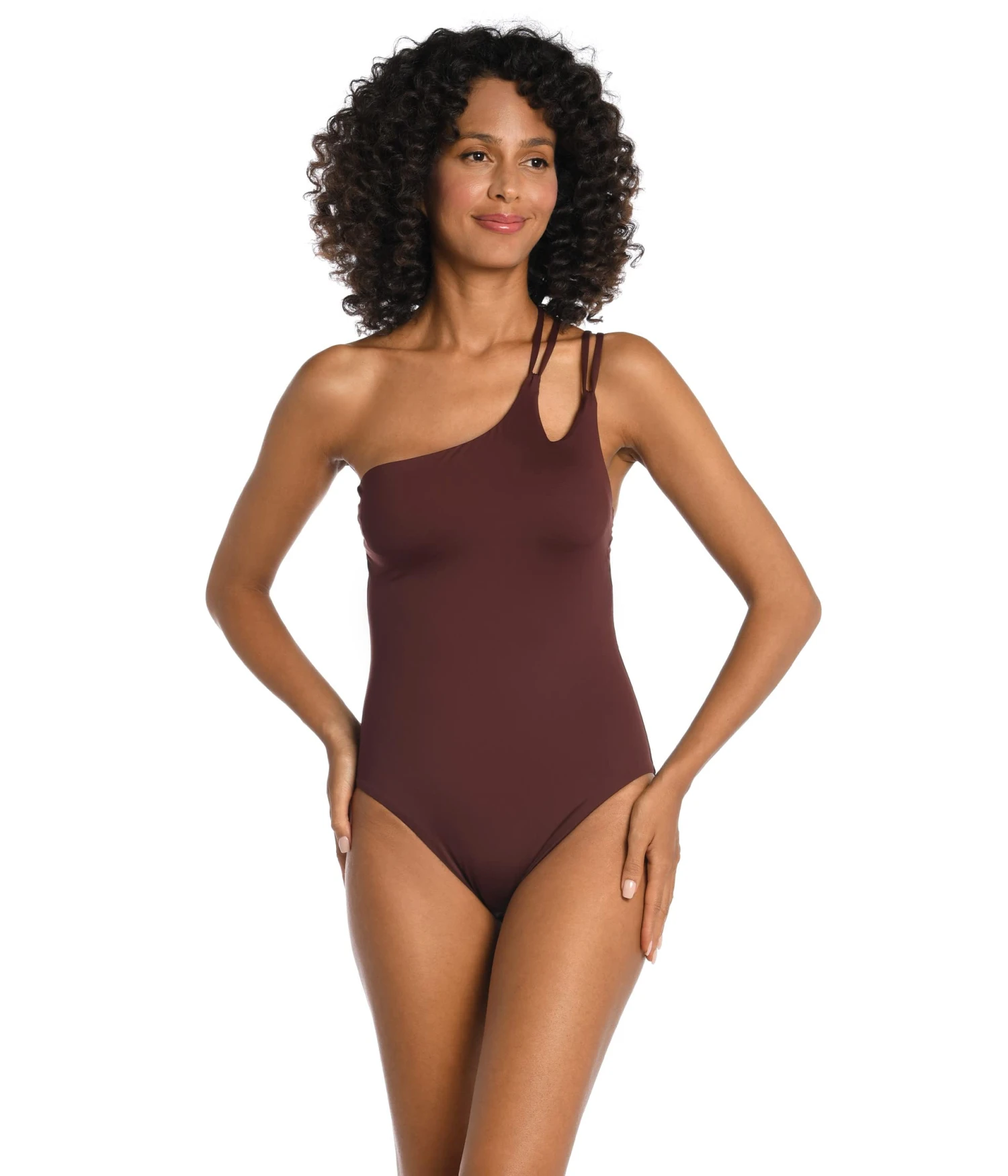 - Get a picture-perfect look on the pool-side by wearing La Blanca® Island Goddess Strappy One Shoulder Mio.