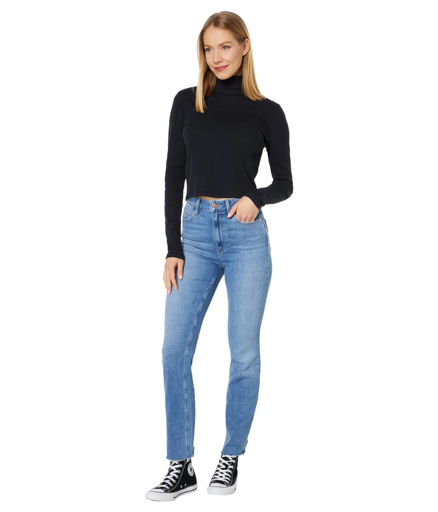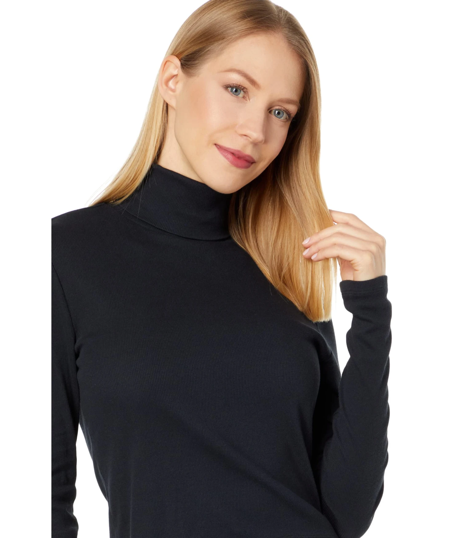 - Turtle neckline and long sleeves.