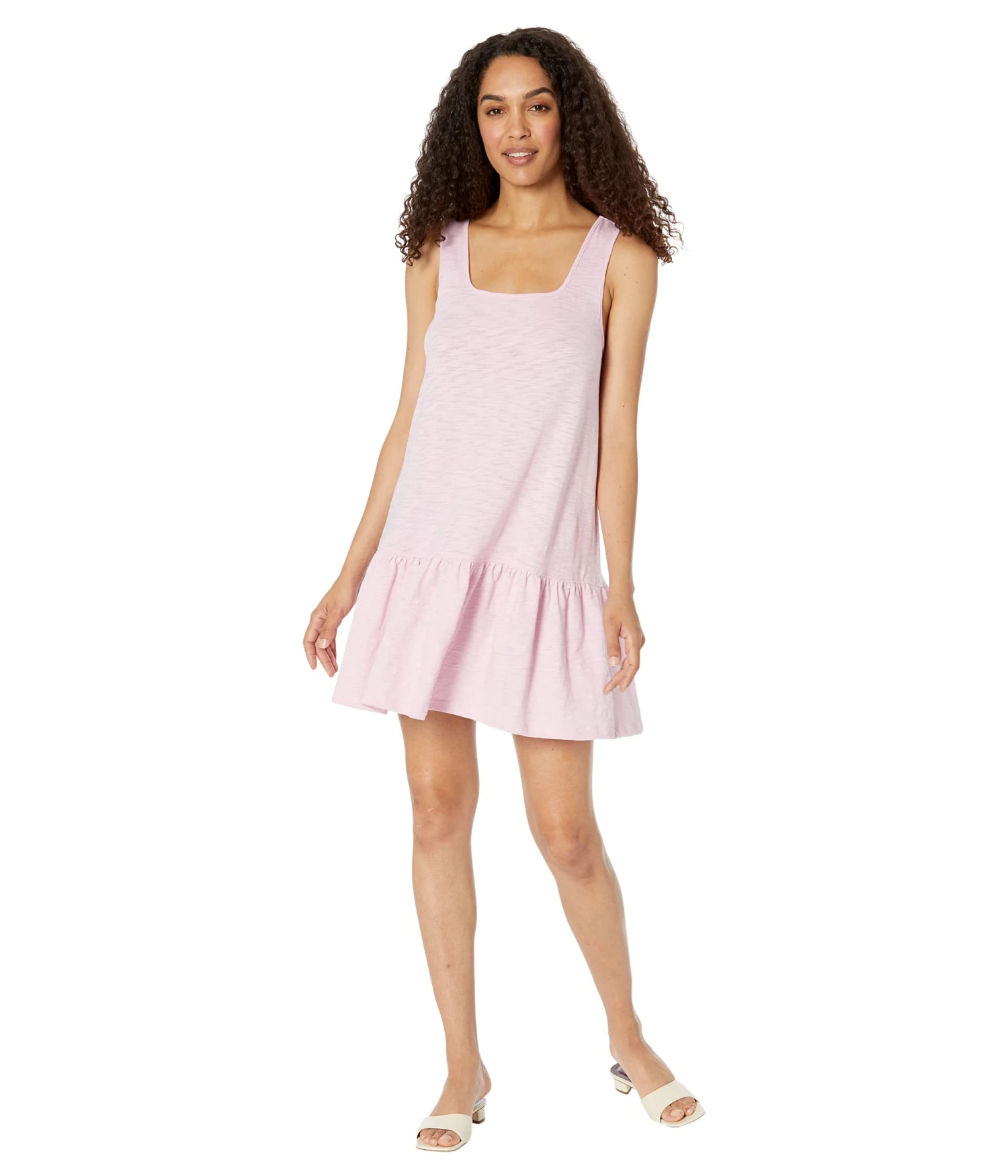 - Step out in the Lilla P™ Square Neck Peplum Tank Dress in Loose Knit Slub for a low-key casual look.