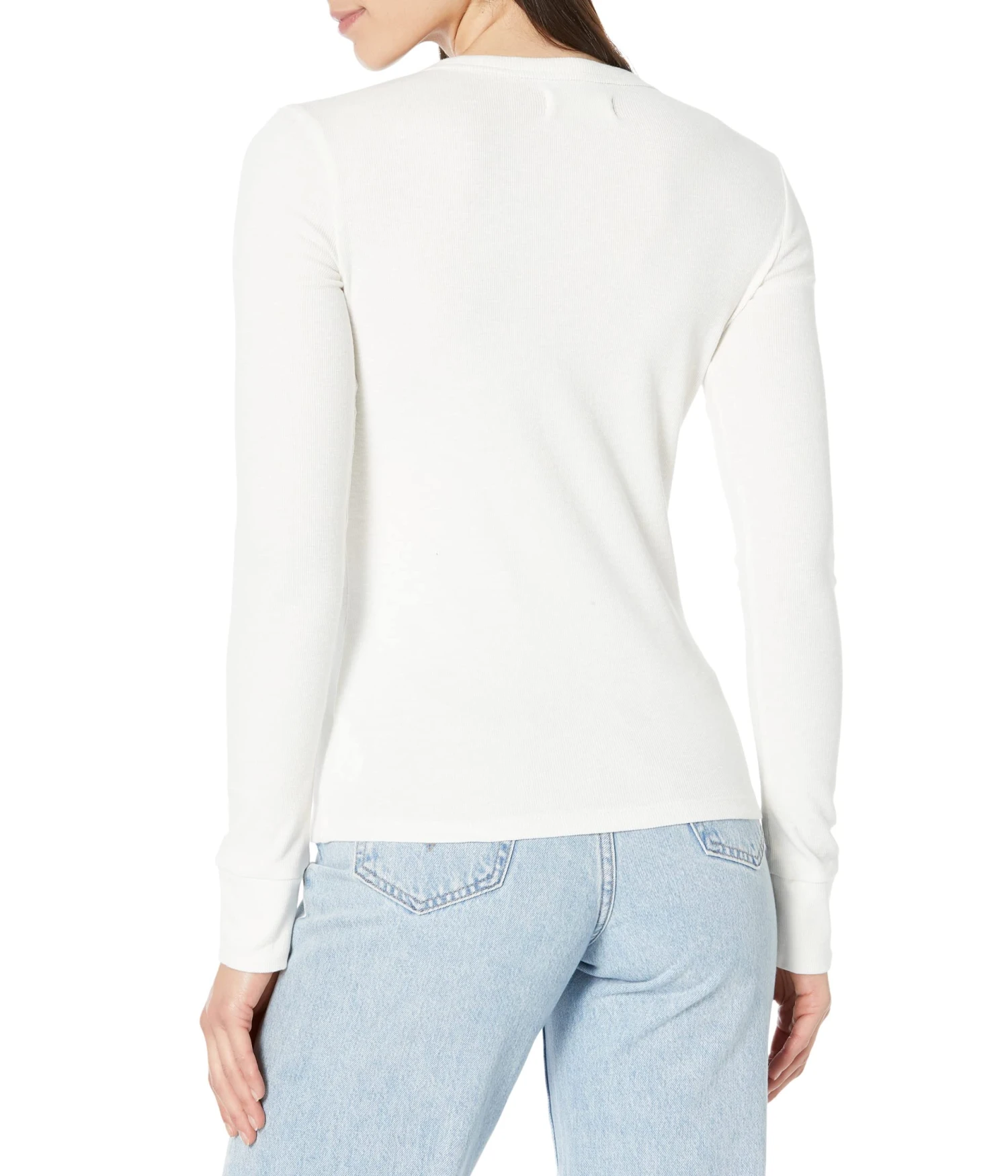 - Round neckline with five-button placket.