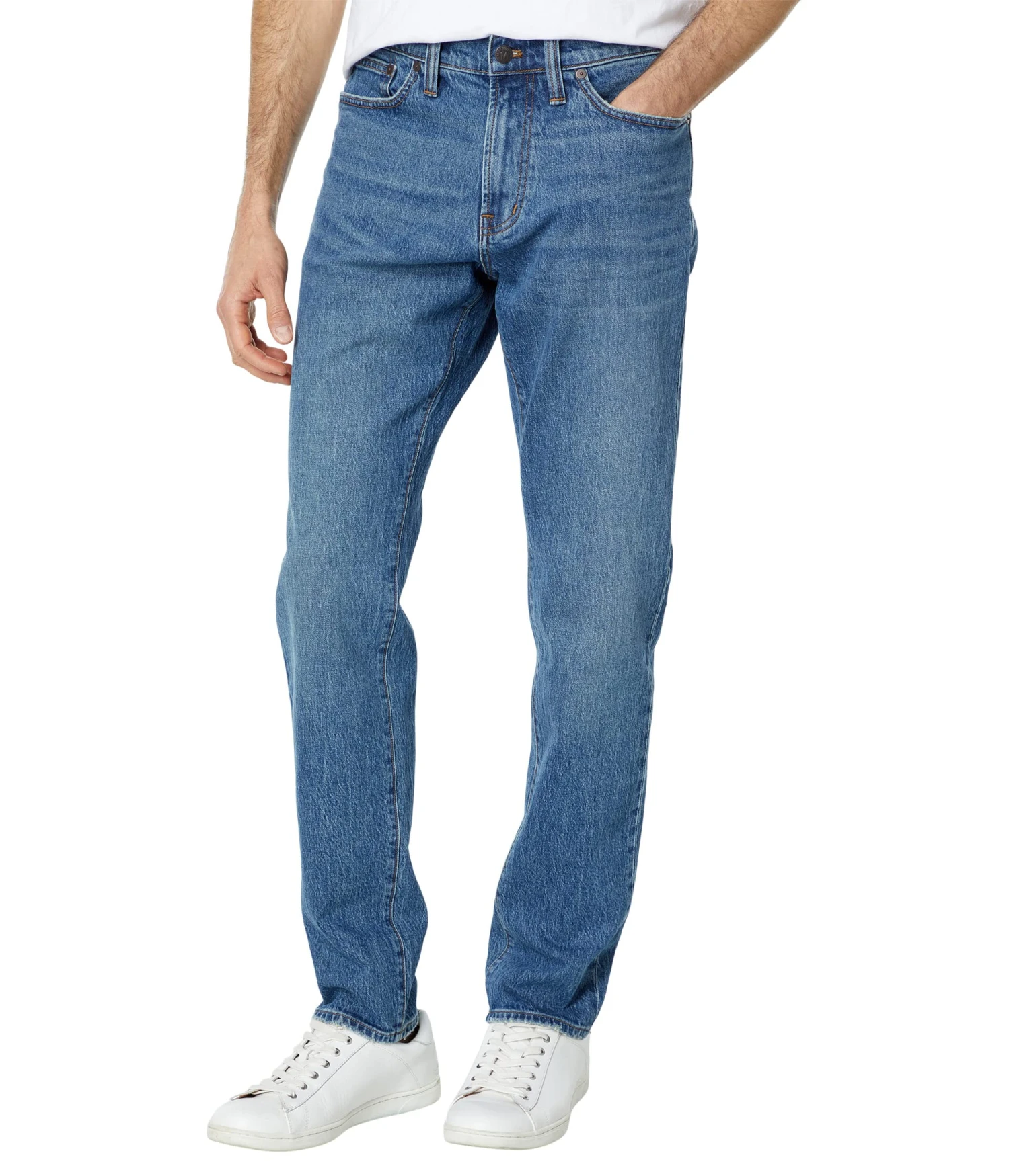 - Stay comfortable wearing these Madewell® Slim in Maxdale Jeans. This pair comes with a classic five-pocket construction.
