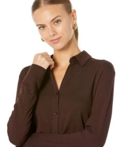 - A button down shirt designed with a feminine touch in mind is the Majestic Filatures Soft Touch Semi Relaxed Shirt.