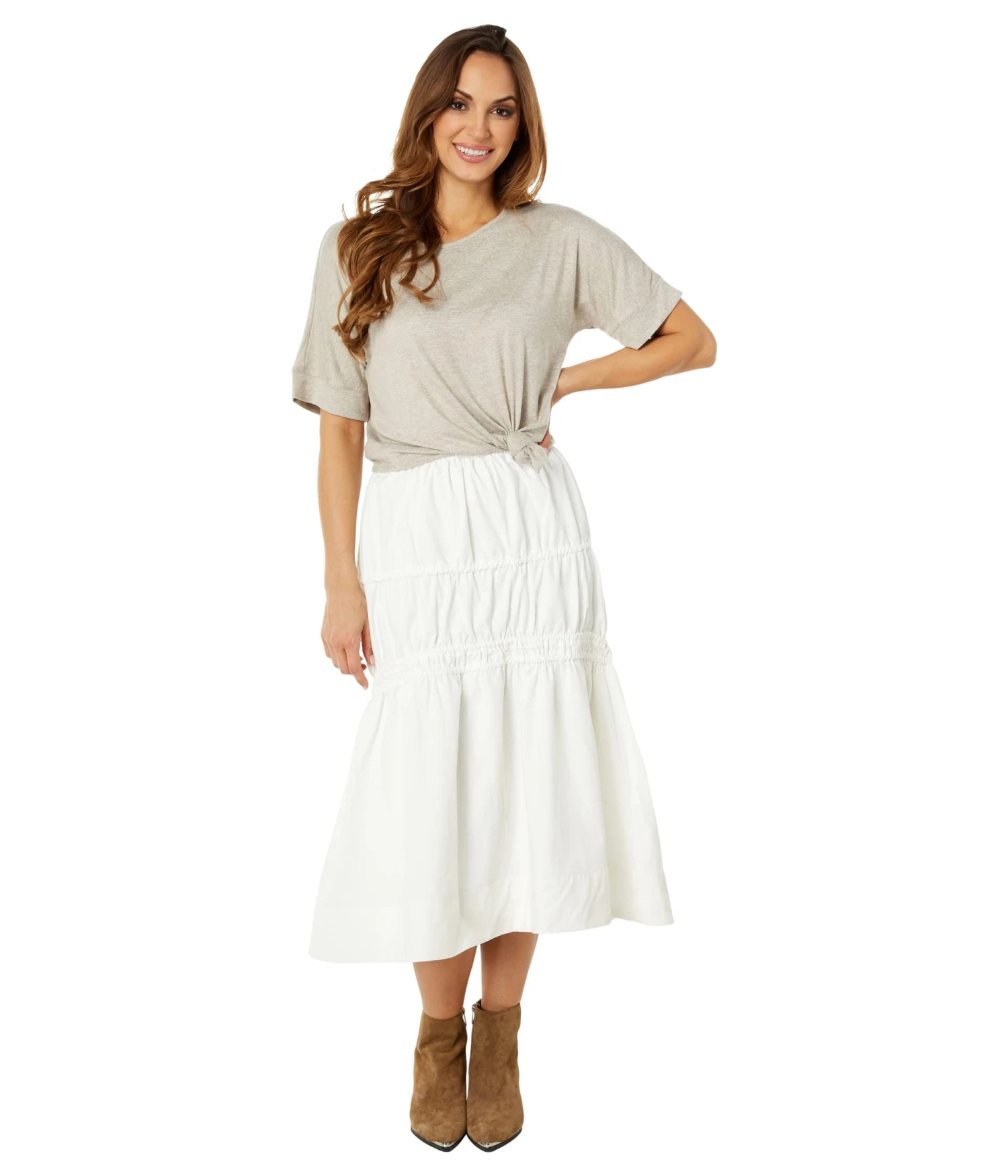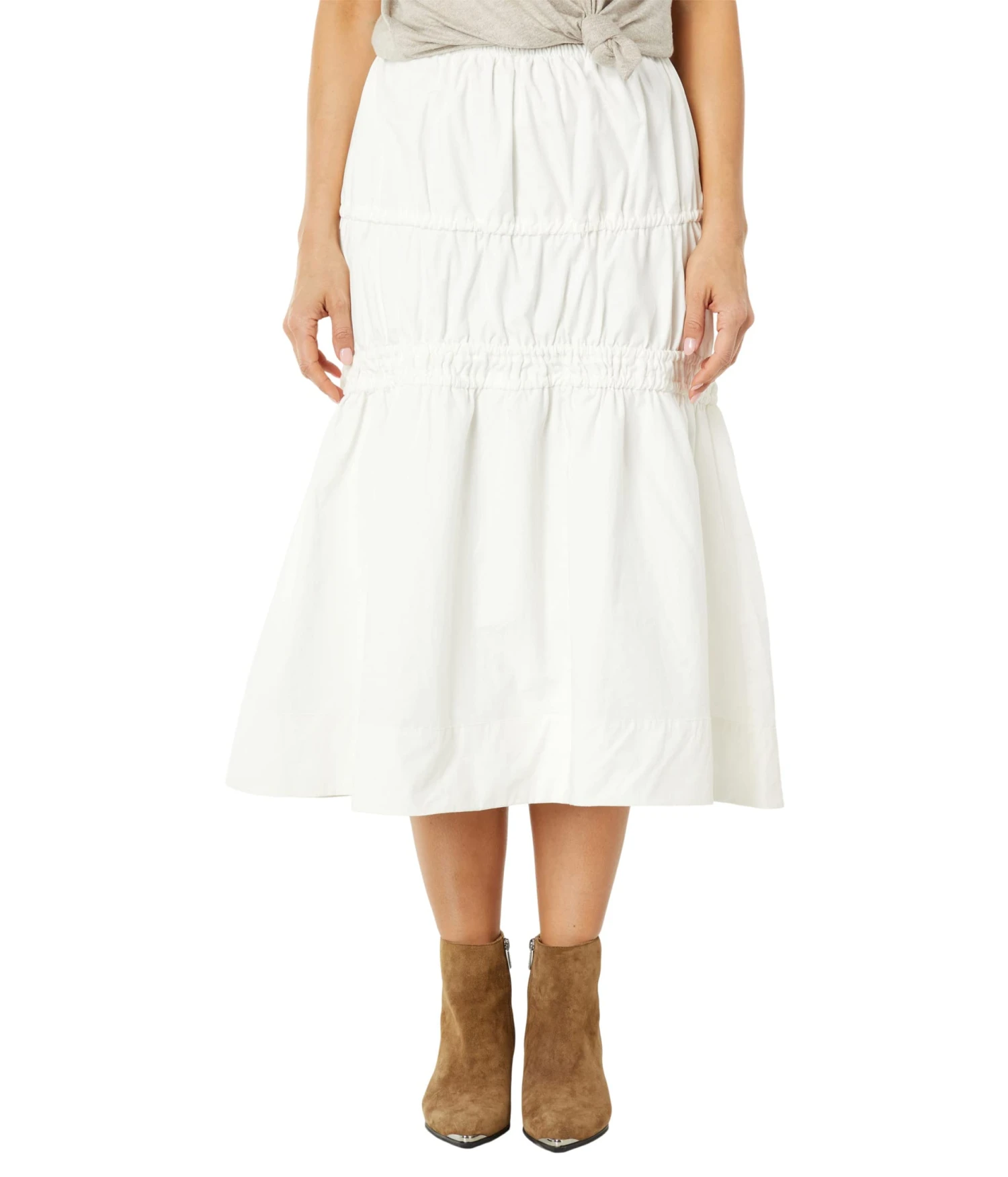 - MOON RIVER™ Tie Detailed Maxi Tiered Skirt is a classy addition to the closet, makes a perfect option to pair with fitted tank tops or loose tee.