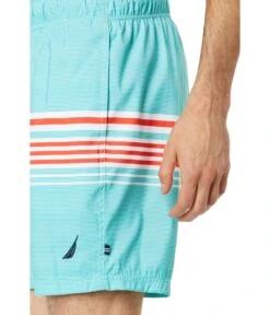 - Feel comfortable enough to take a dip in the pool by wearing Nautica® Sustainably Crafted 6″ Striped Swim shorts.