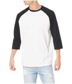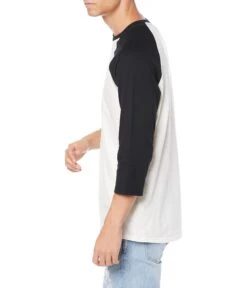 - Three-quarter, raglan sleeves and crew neck.