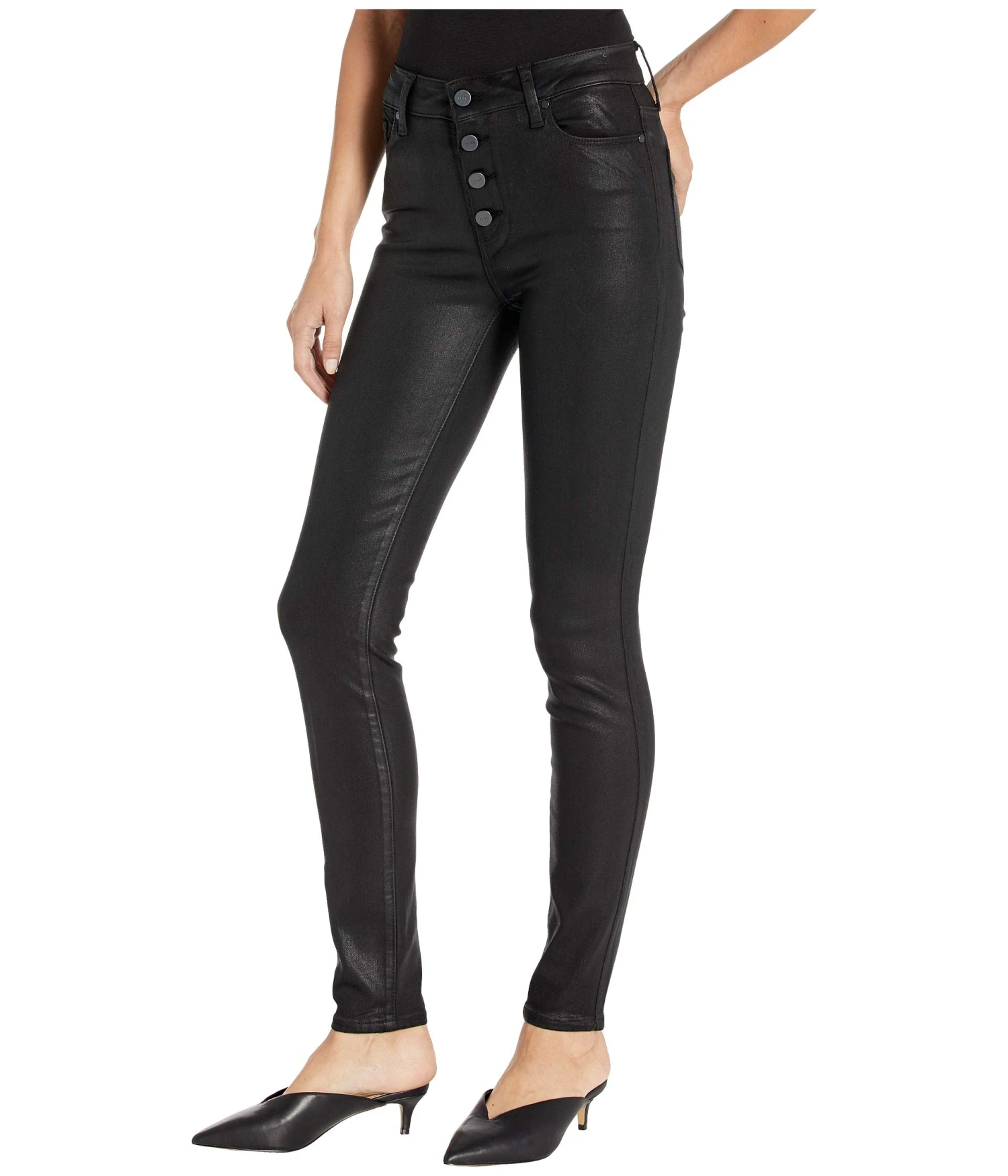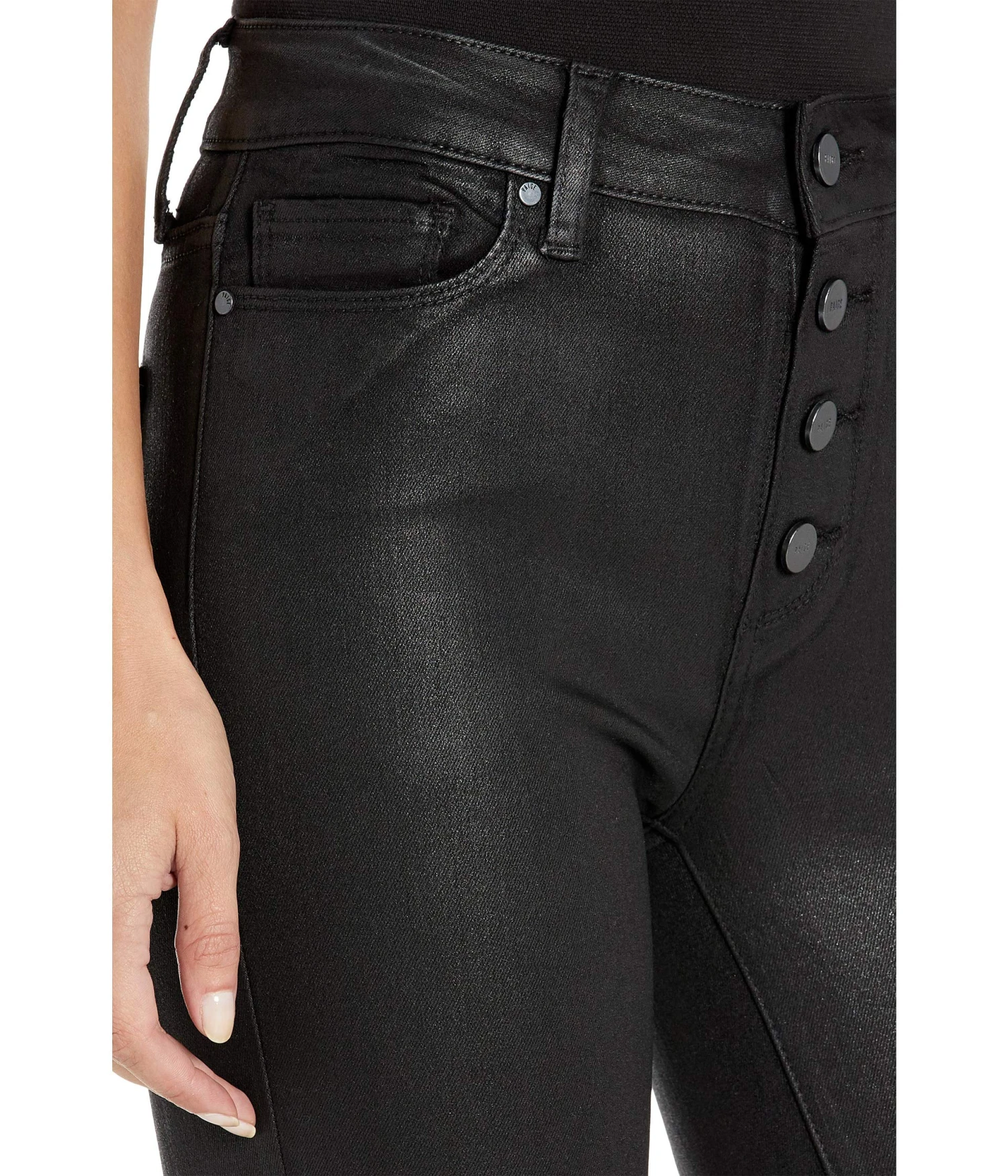 - Exposed button fly.