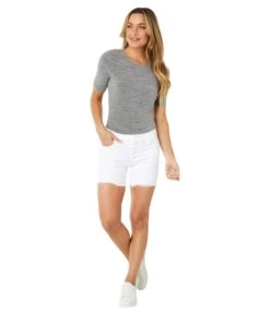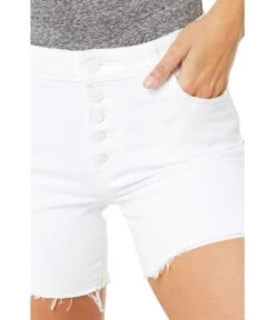 - Keep it simple and elegant wearing the PAIGE® Sarah Longline Shorts w/ Exposed Buttonfly in Wild White Destructed. This pair features a buttoned front closure.