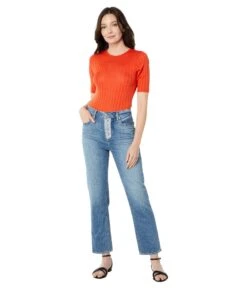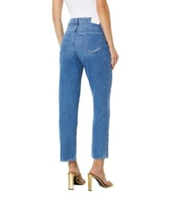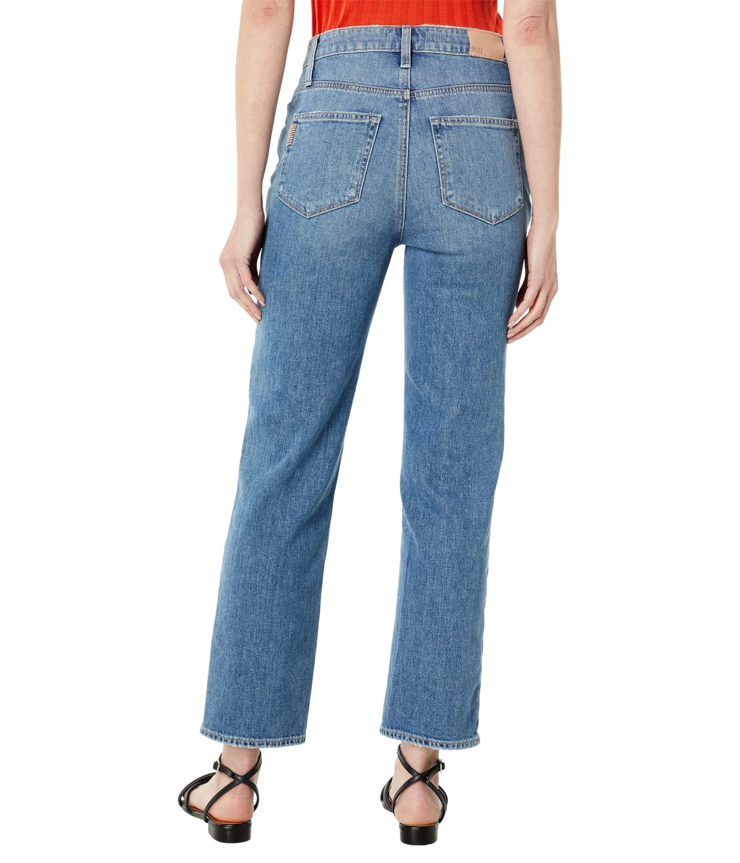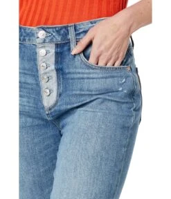 - Stay comfortable all day long wearing the stylish and super-comfy Paige® Sarah Straight Ankle w/ Exposed Buttonfly + Reverse Details in Magda Distressed Jeans.
