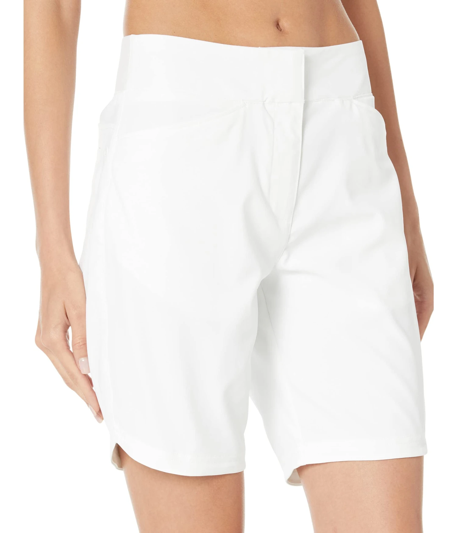 - Curved hemline.