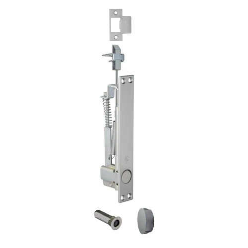 Self Latching Flush Bolt with Bttom Fire Bolt, for Metal Doors Fire Rated Up to 3 Hours, 1 In. by 6-3/4 In., Satin Chrome