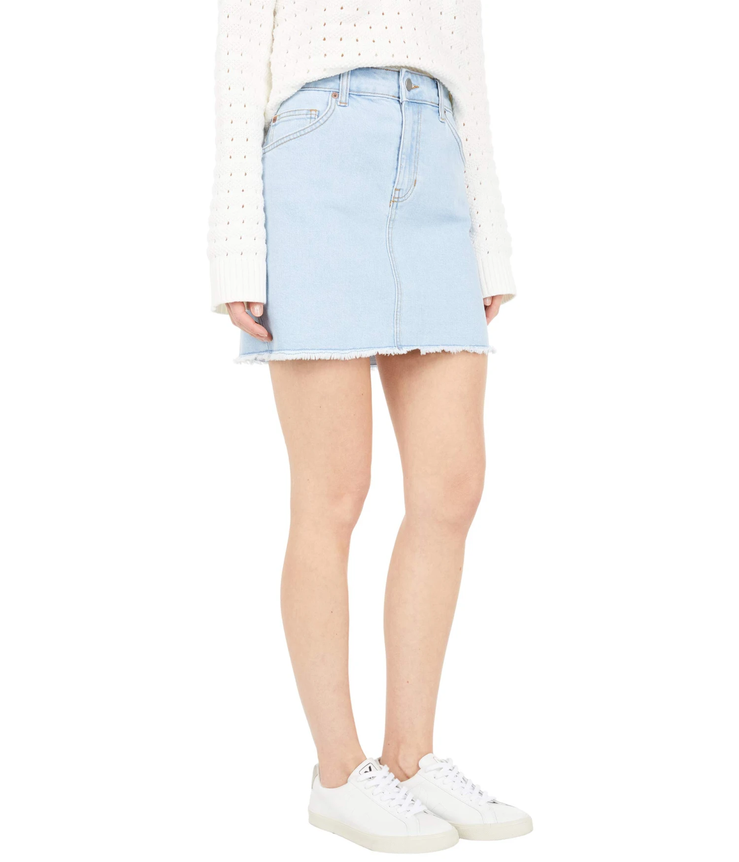 - Roxy® Show Us Love Skirt features a classic button-close denim skirt with raw edges. Perfectly paired with cropped shirts or tees tucked in for a casual, trendy aesthetic.