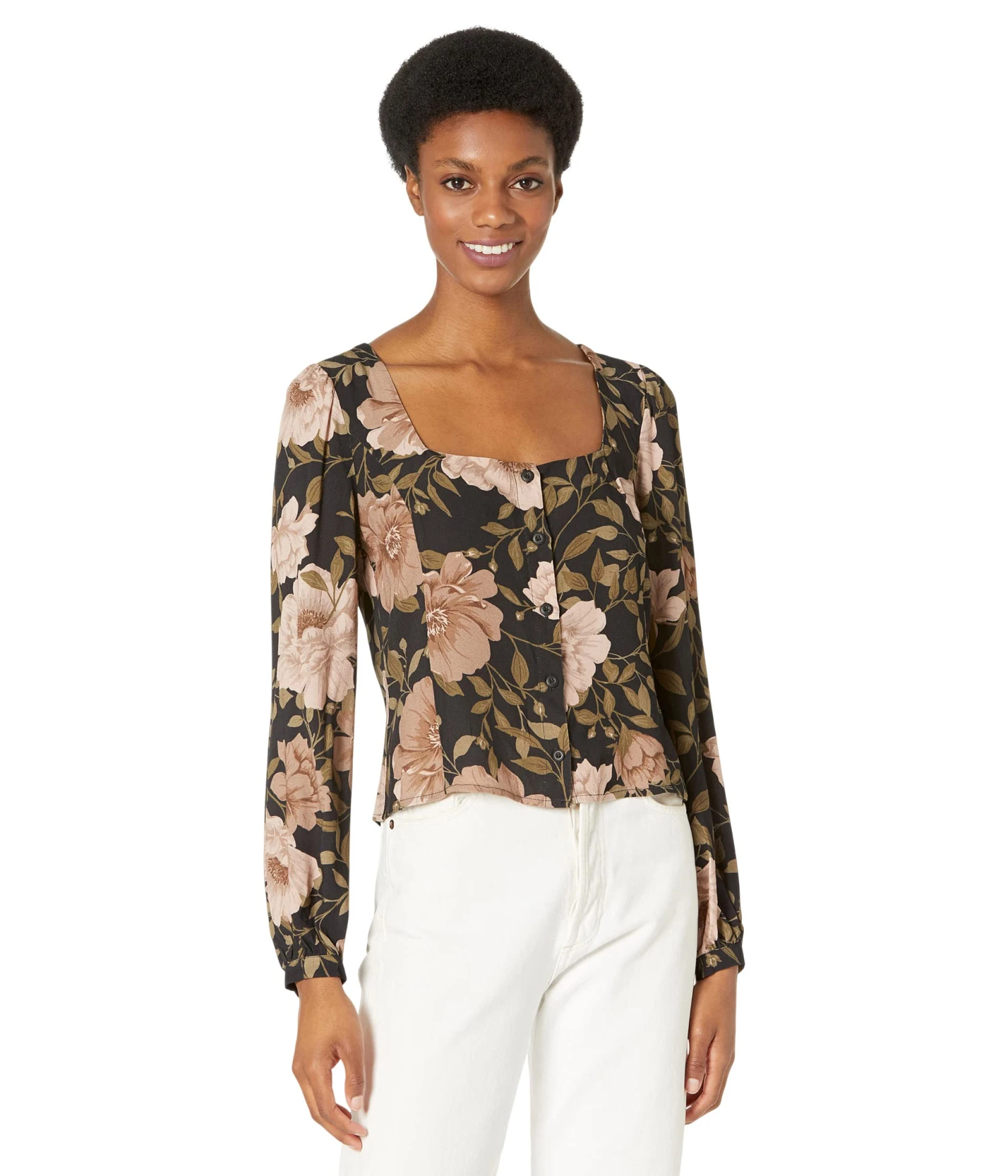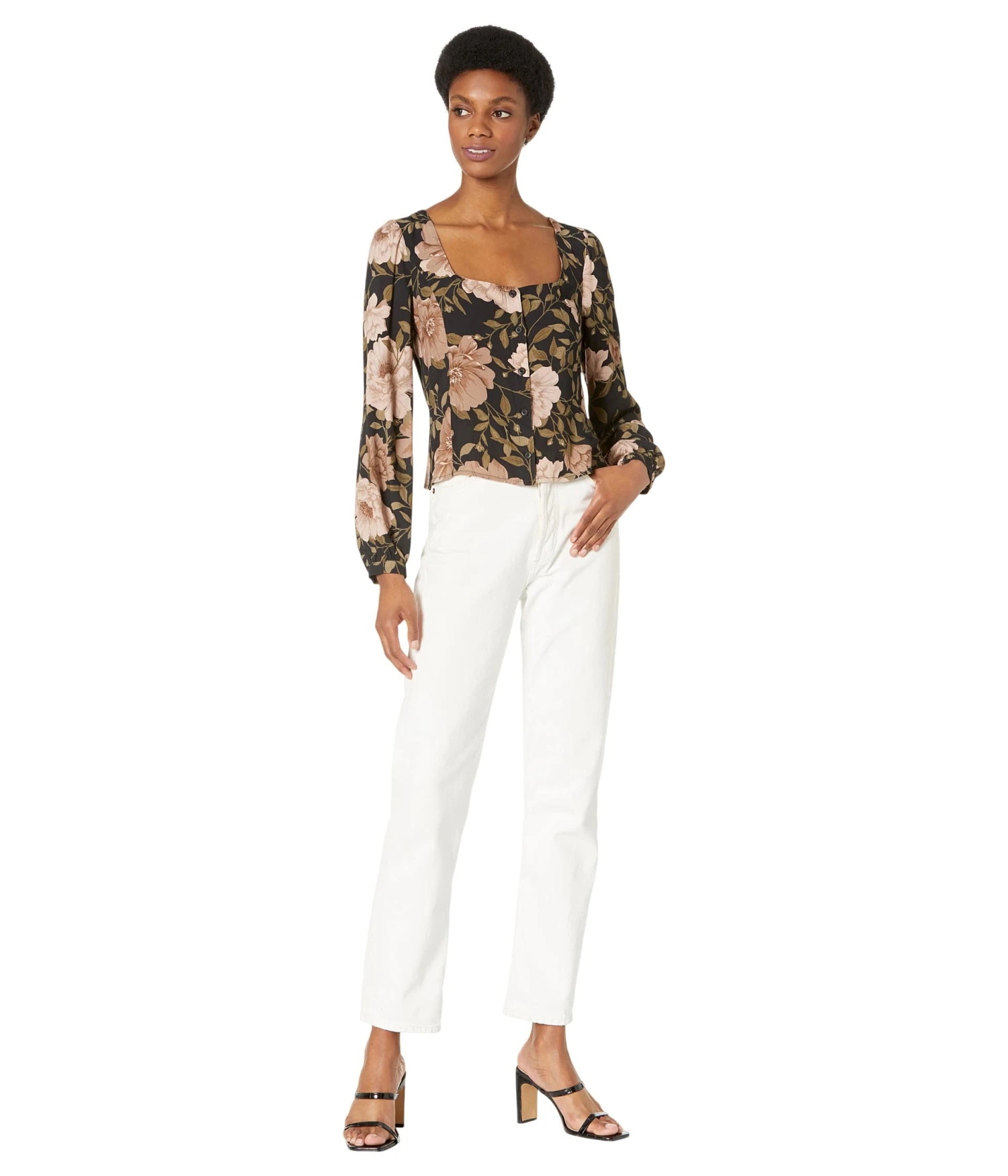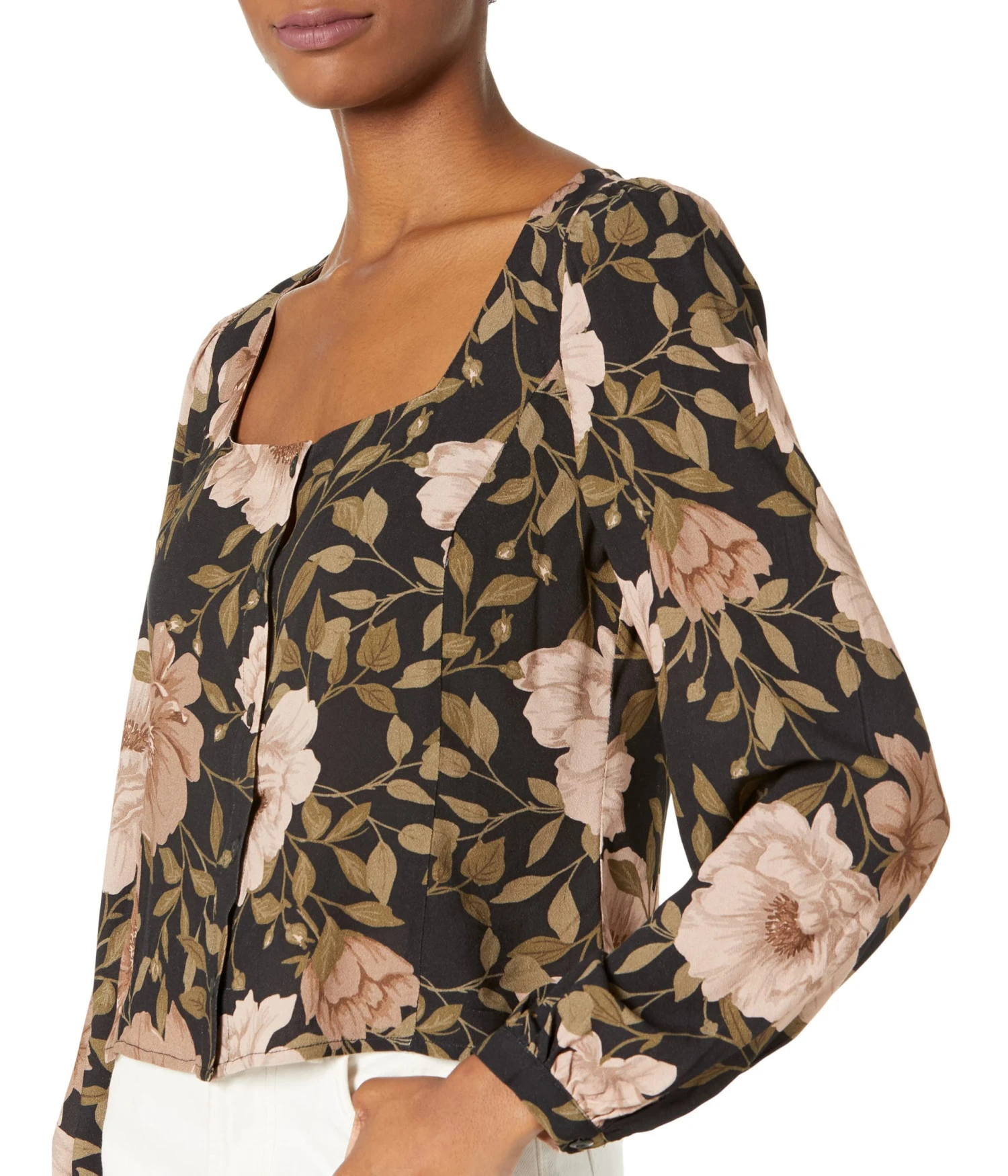 - Wide square neckline.