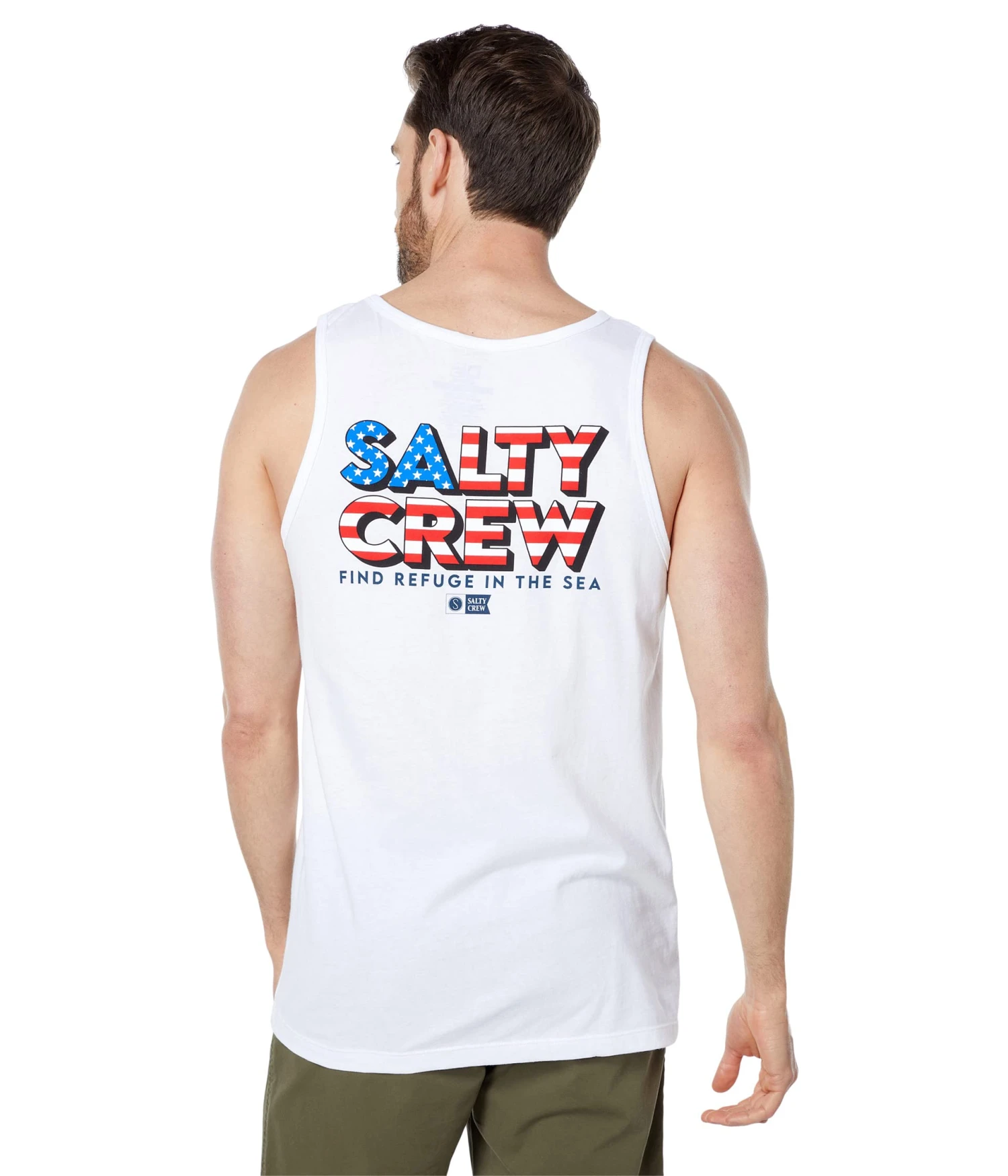 - Take a stylish stroll on the beach wearing the Salty Crew® Stars & Stripes Tank.