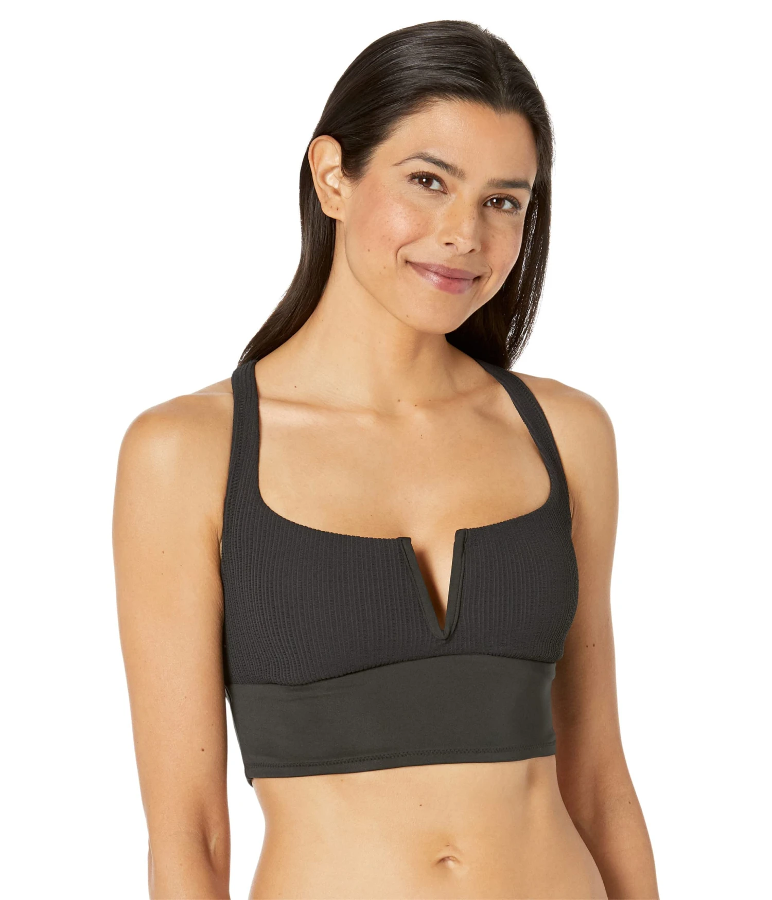 - With its sleek cutout racerback and micro-rib textured fabrication, the Sanctuary™ Sandbar Solids V-Wire Crop Swim Top is sure to boost your poolside look while keeping you comfortable.