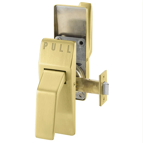 Push/Pull Latch, Low Profile, 2-3/4″ Backset, ANSI 4-7/8″ Strike, Engraved “Push” and “Pull”, RH, Satin Brass