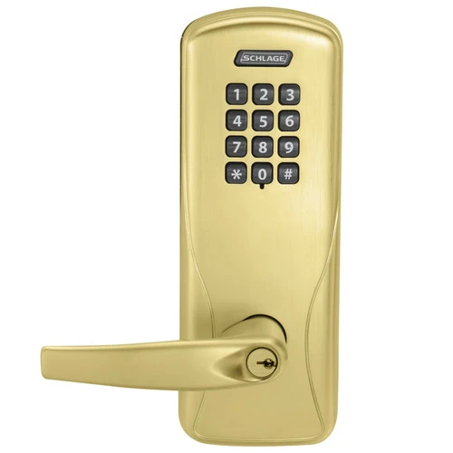 CO-100 Standalone Electronic Lock, Cylindrical, Office Function, Keypad Reader, Athens Style Lever, With Schlage Standard Cylinder, Satin Brass