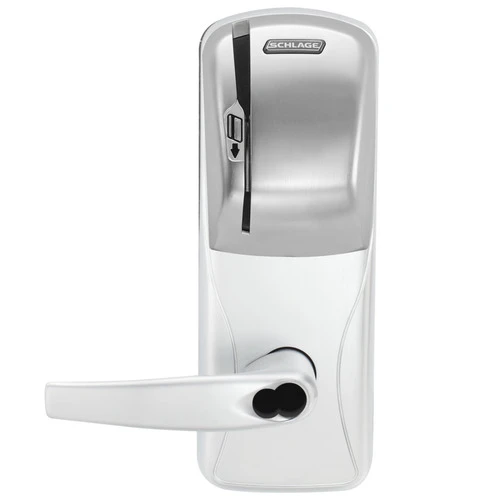 CO-250 Standalone Electronic Lock, Mortis, Classroom Function, Magnetic Stripe (Swipe), Athens Style Lever, FSIC Prep, Bright Chrome