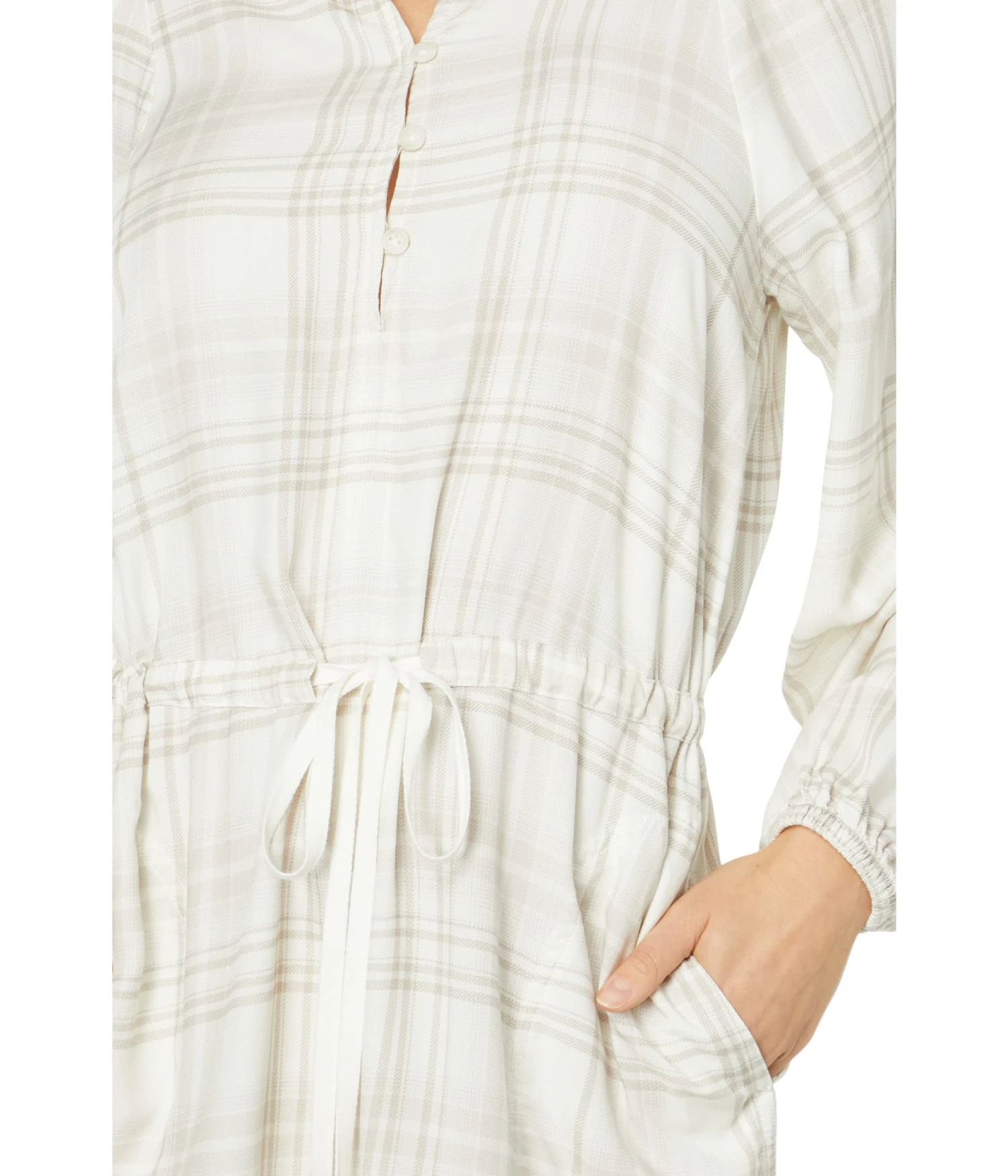 - Loop buttons on the bodice and an adjustable drawstring waist.