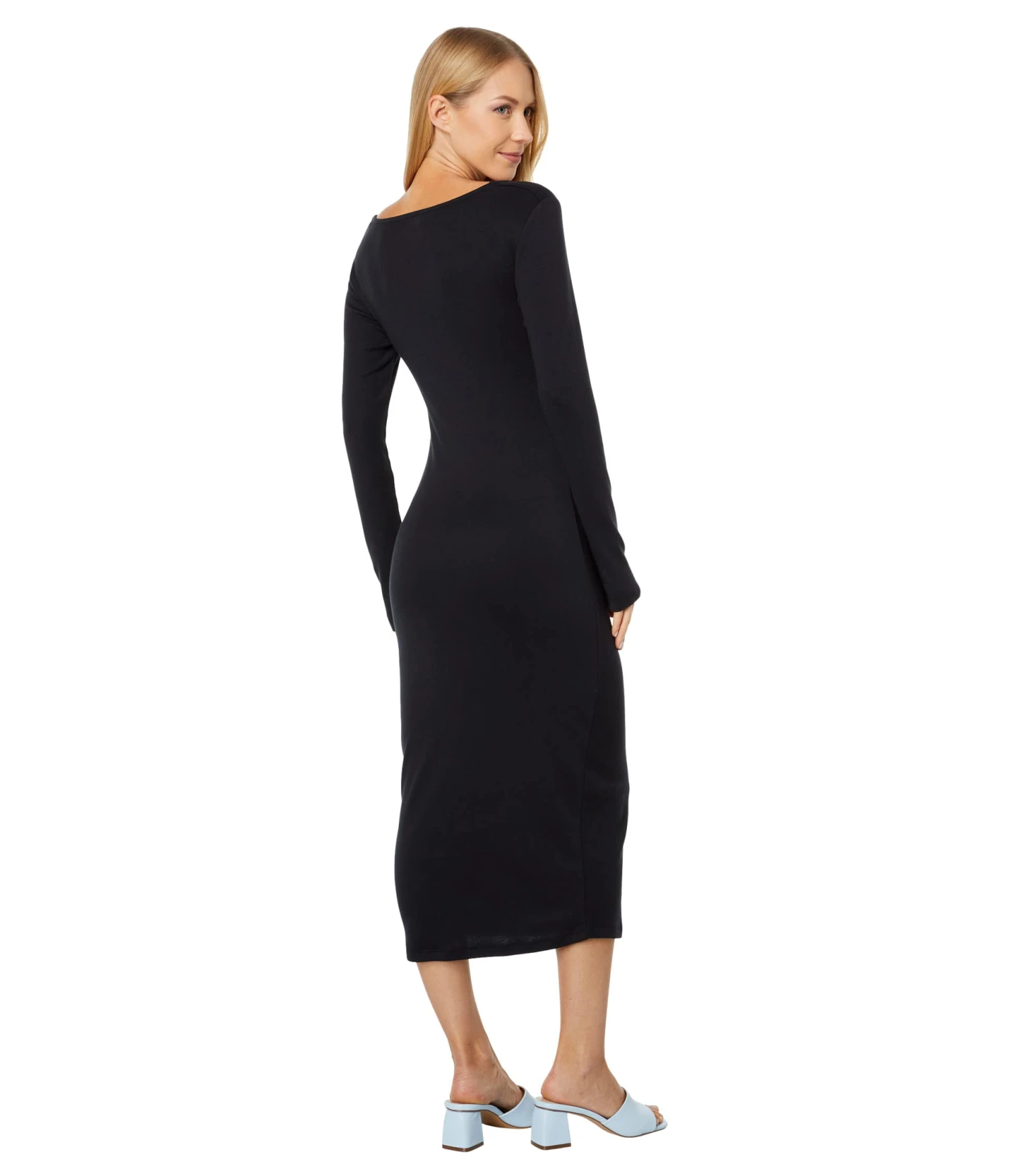 - Exude a strong persona by wearing the stunning Three Dots™ Square Neck Side Gather Dress.