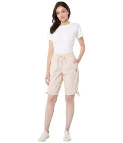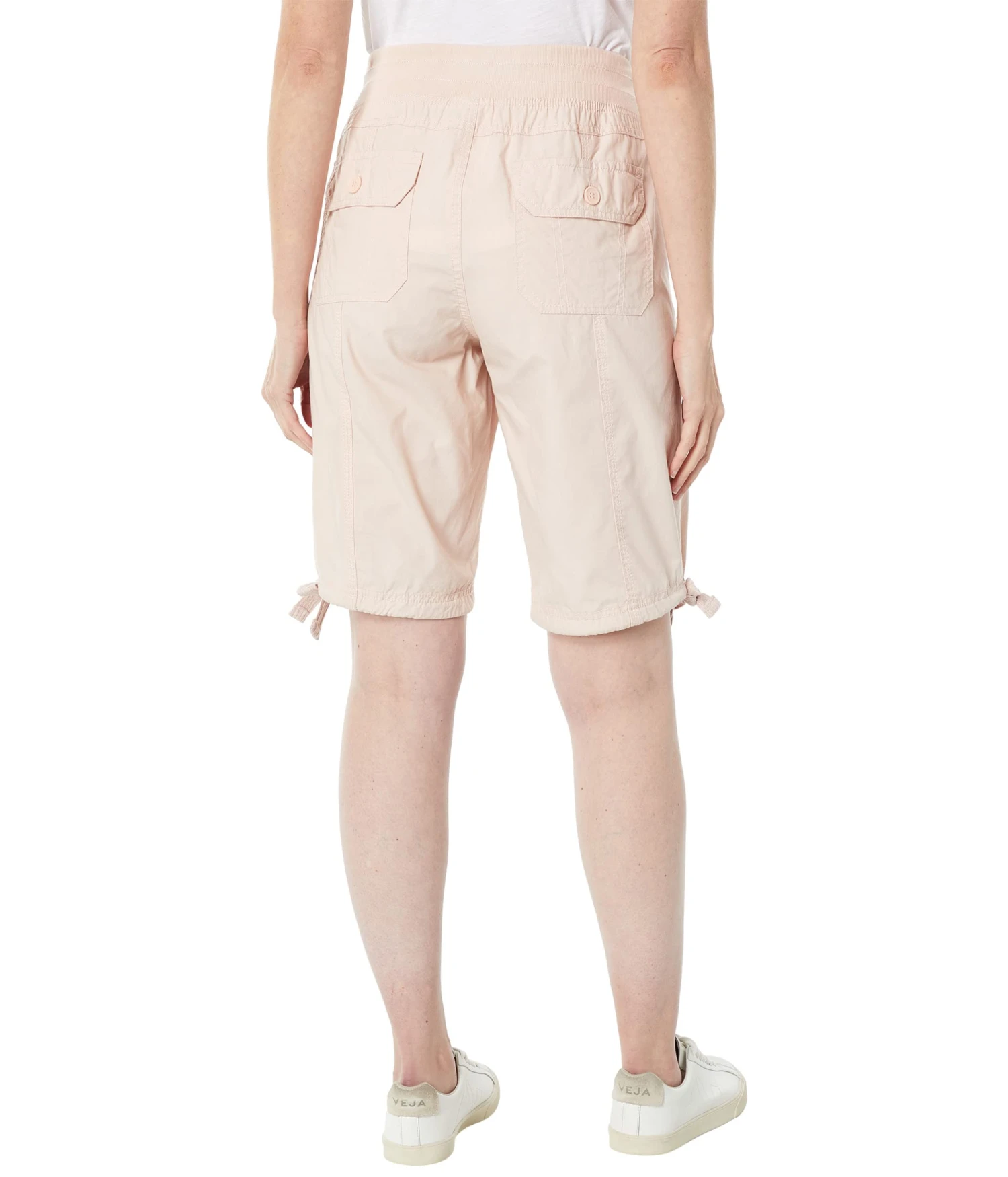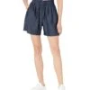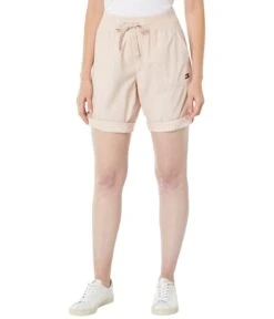 - Pull-on shorts with elastic waistband and external drawstring.