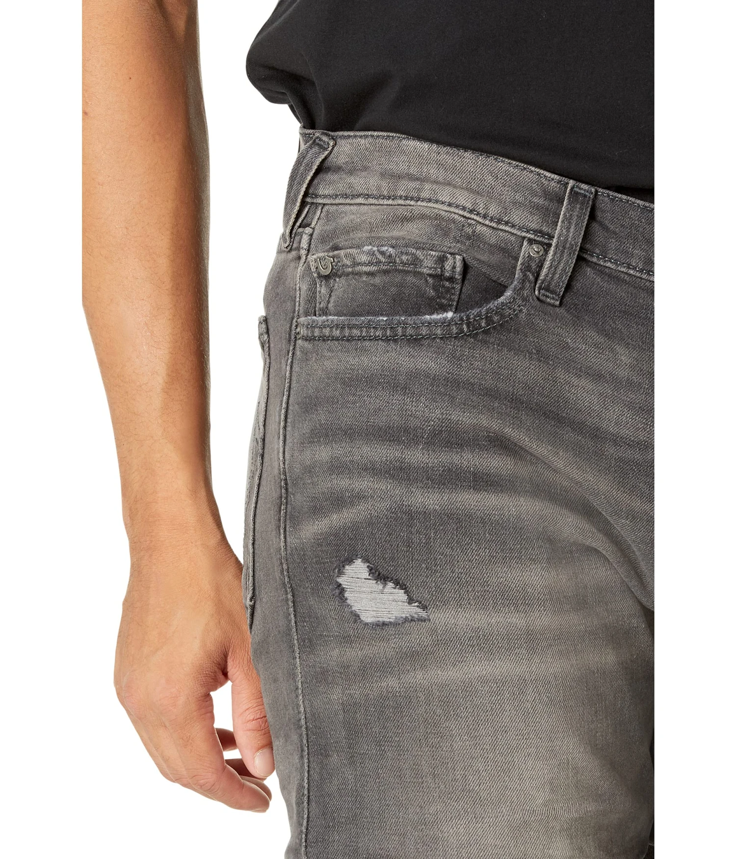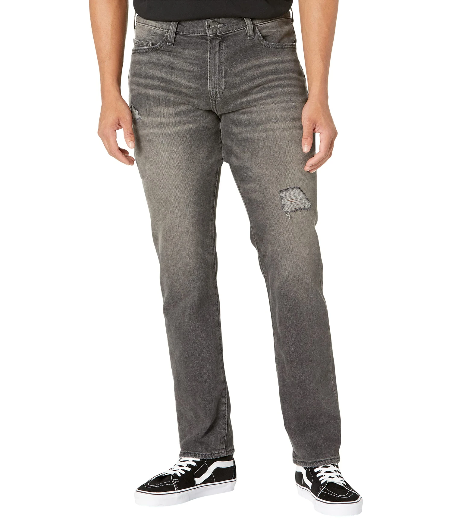 - Classic five-pocket styling offers zip-fly and button closure.