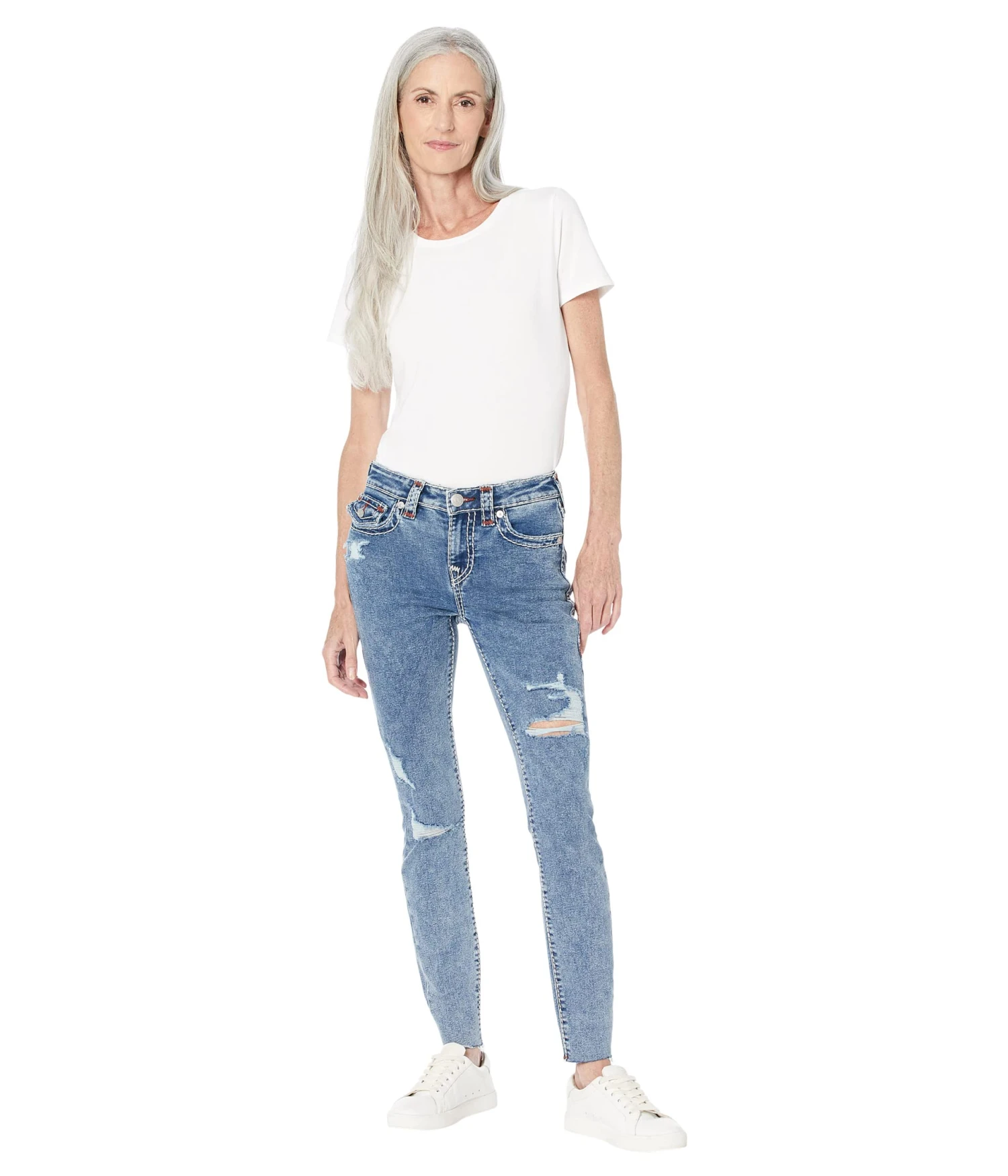 - Go for a vintage vibe with the Jennie Mid-Rise Curvy Skinny Flap Supert in Hymn. This distressed mid rise curvy skinny jean for women prevents gapping at the waistband and is specially designed to maximize shape retention throughout the day.