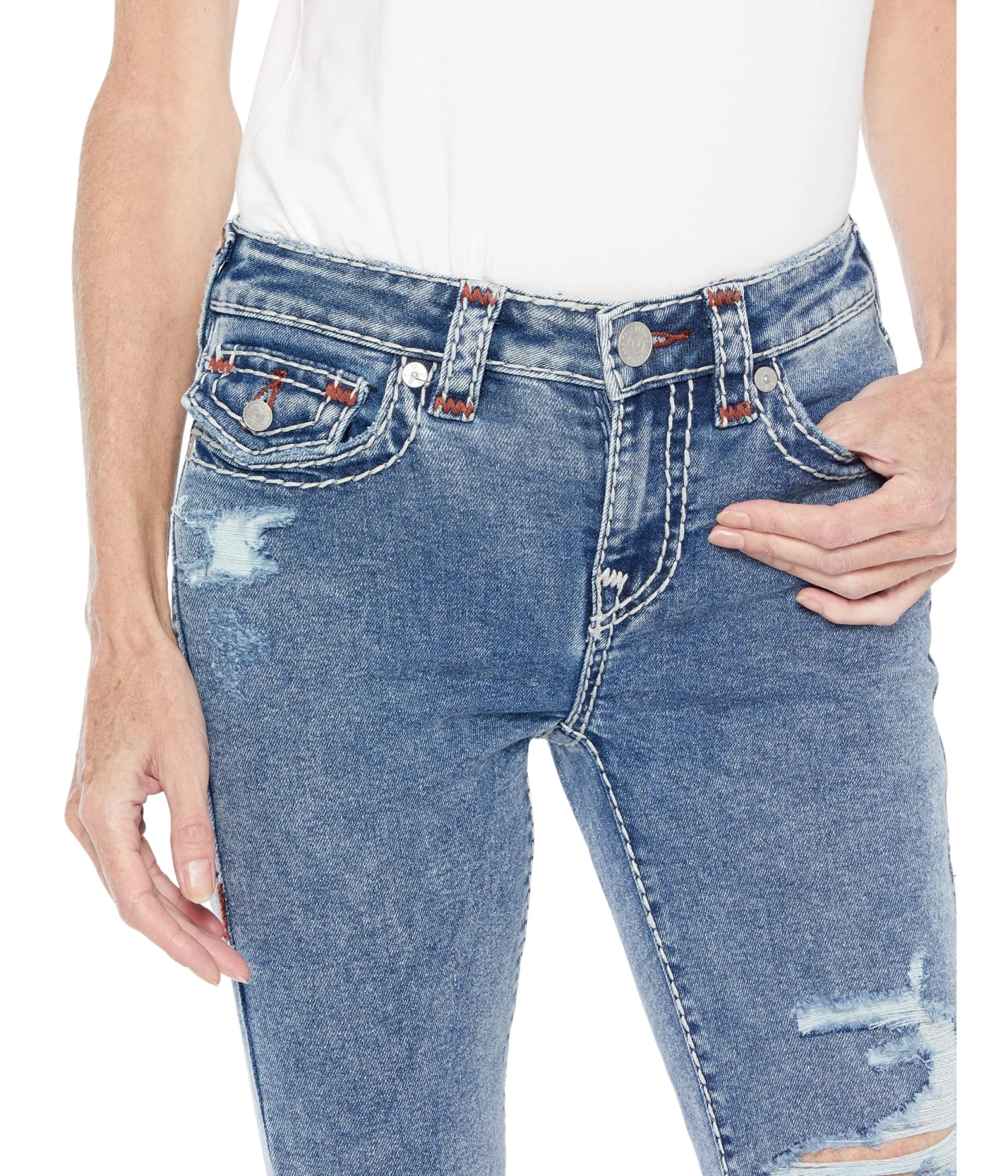 - Zip fly and button closure.