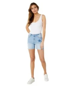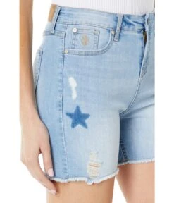 - Wear the U.S. POLO ASSN.® 4 1/2″ High-Rise Destructed Stretch Denim Shorts in Lismore Wash. This pair features a star stitch detailing on the front.