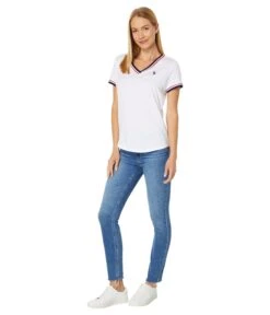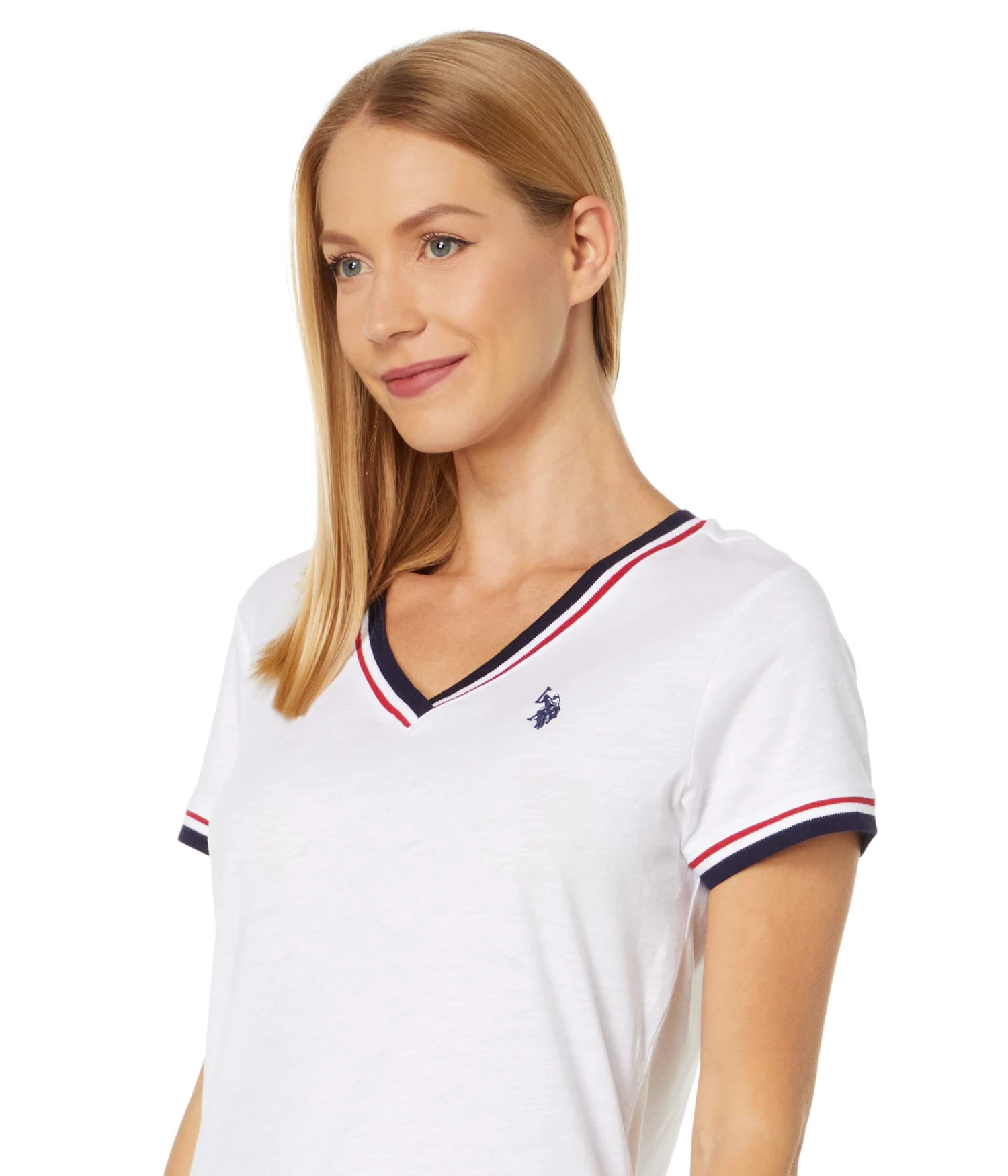- Redefine your casual style, wearing the U.S. POLO ASSN.® Signature Tape V-Neck Tee, crafted using super-soft and lightweight fabric.