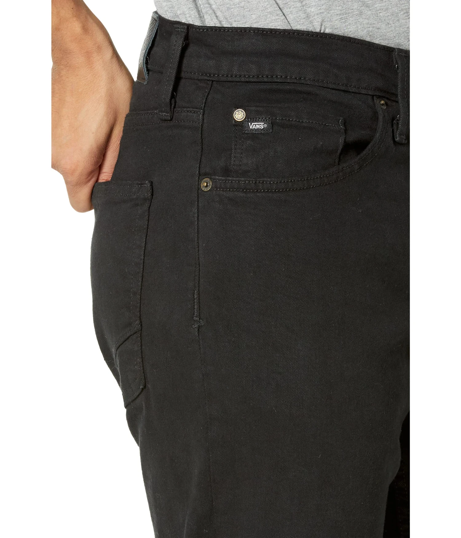 - Crafted from a soft cotton-blend, the Vans® Covina Five-Pocket Straight Denim Pants features an all around belt loop waistband, classic front zip-fly button closure, traditional five-pocket design, and a straight fit.